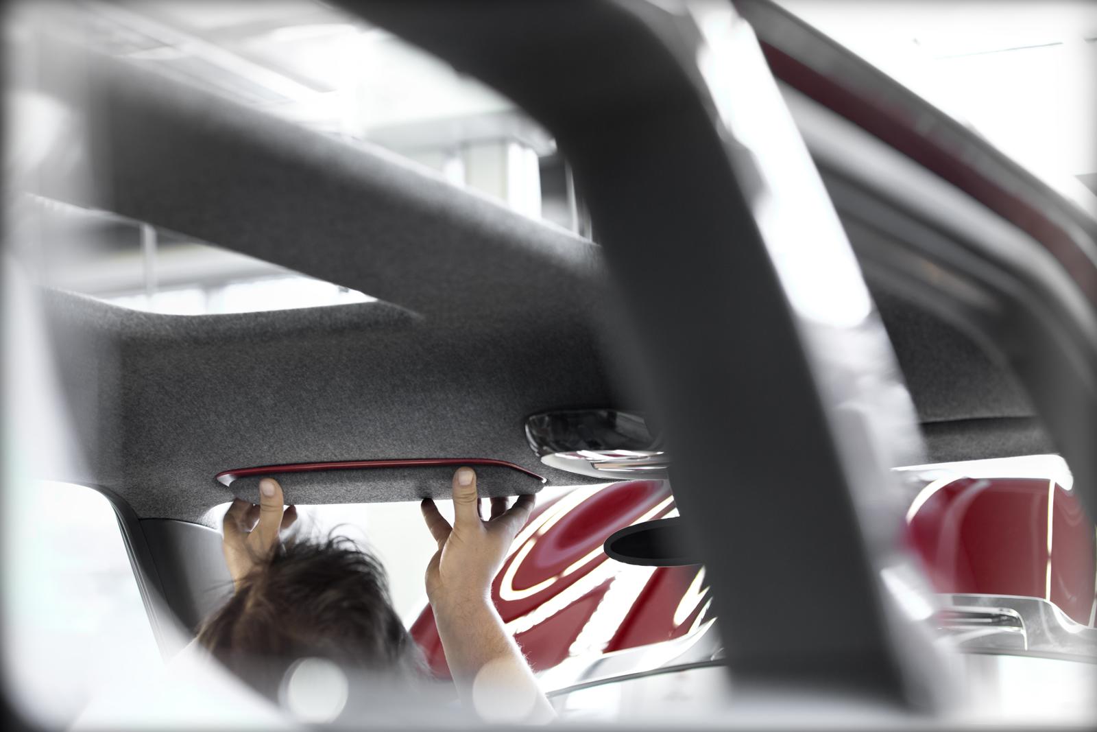A panorámatető kétrészes és átlátszó műanyag, az egyelőre ki tudja, mekkora csomagtér dupla és átlátszó padlós. Az utastérben fekete, kék és piros (nubuk, nappa és lakk) bőrkárpit, fadekor és hangulatvilágítás dobja fel a nem kicsit „cool hangulatot. A középkonzol kijelző-felülete a választott tartalomhoz vagy a pillanatnyi menethelyzethez igazodik. A választott vagy az egyes járműfunkciókhoz kapcsolódó tartalomhoz három „intelligens kapcsoló tartozik, amelyek szabadon is programozhatók, egyéni ízlés szerint rendelve hozzájuk a kívánt funkciókat. Az egyes kapcsolók eltérő tapintása révén a vezető menet közben anélkül aktiválhatja a különböző funkciókat, hogy tekintetét levenné az útról.