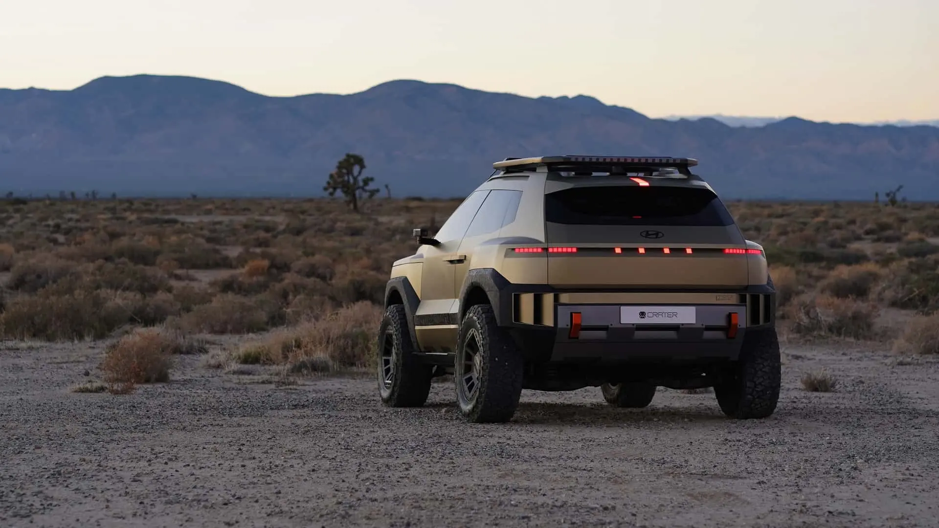 Ledobta a leplet a Crater, egy vadonatúj SUV koncepció, amely a Hyundai jövőbeli terepjáró-irányvonalát vetíti előre. Vagányul néz ki, 33 colos terepkerekeken, haspáncéllal, vonószemekkel és fél tucat kiegészítő lámpával mutatkozott be. Az utastér is kellően vad. A hagyományos műszerfal helyett egy henger nyújtózik ajtótól ajtóig, ezt látszólag két heveder tartja, ami nyilván csak dizájnelem. Hatalmas tablet helyett négy kicsi, négyzet alakú képernyőn jelennek meg a különböző funkciók, ezek a kijelzők ráadásul teljesen kivehetők az autóból.