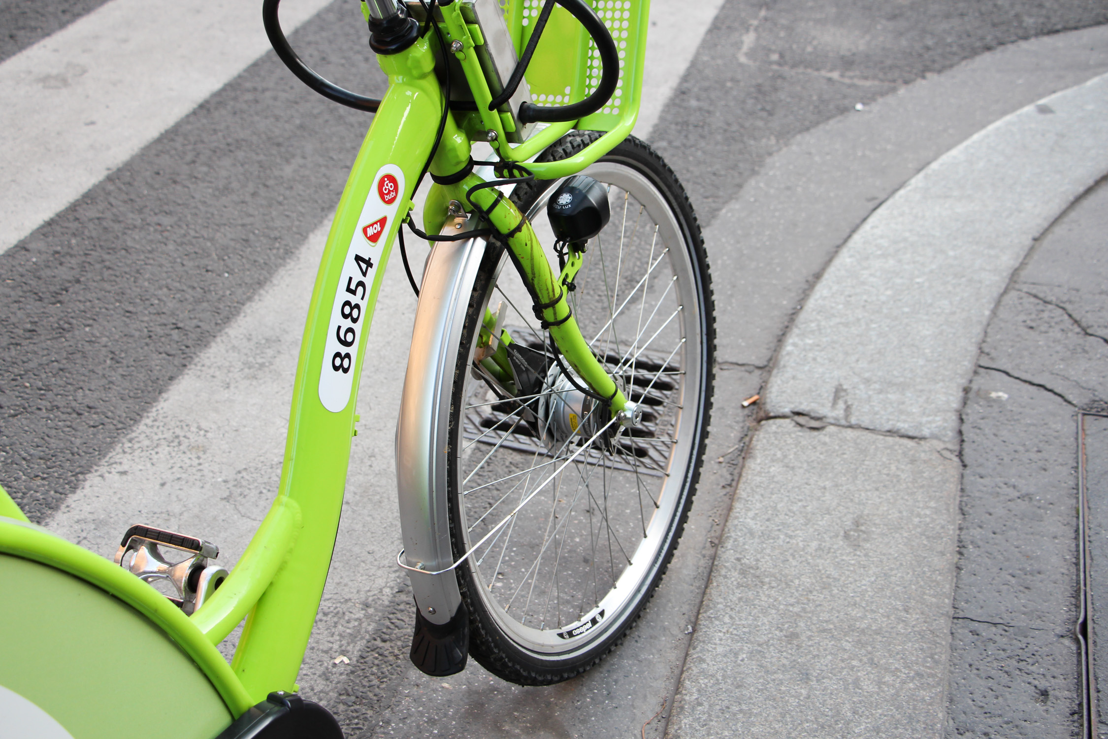 Hevederes első csomagtartó, csengő, elektromos zár és elektronikus bérlőazonosítás is van a Bubin, nem látszik, de GPS-nyomkövetés és ennek megfelelően GSM-modul is van a kerékpárokban
