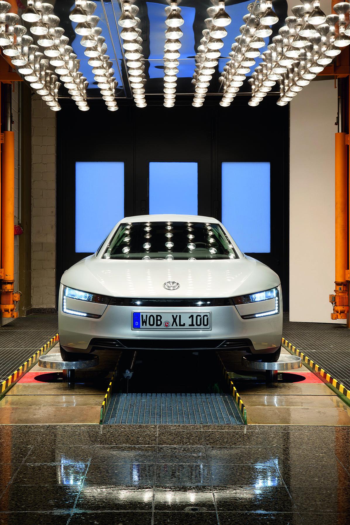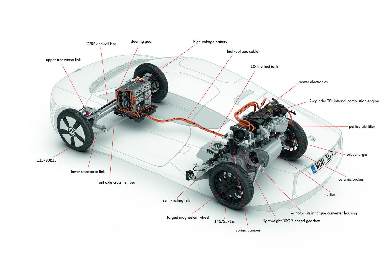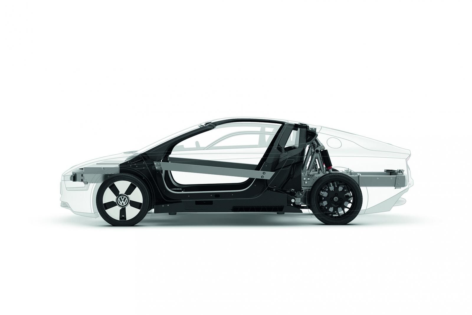A hihetetlennek tűnő étvágytalanságot szenzációsan áramvonalas (Cd 0,189), a visszapillantó tükröket például kamerákkal, az üvegeket polikarbonáttal helyettesítő, részben ultrakönnyű szénszálas műanyag karosszériával (és vázzal) segítették elő, az üres tömeg 795 kg – az 5,5 kWh-s kapacitású lítium-ion akkumulátorral együtt. A dizájnosan is spártai utastér – eltoltan – kétszemélyes, az űrhajó hossza 3888, szélessége 1665, magassága 1153 mm. A csomagtartó 120 literes – jelképes, mint igazából maga az XL1 is.