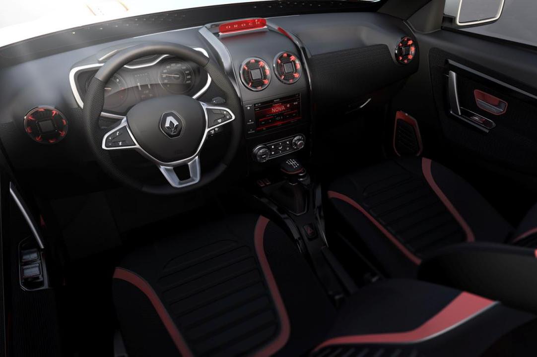 Bent a neoprén búvárruhák anyagára emlékeztető kárpit rímel a videóból látott vízisportos képekre. A narancsszínű dekor a kabinban is megjelenik, de az igazi kunszt a C-oszlopokon elhelyezett kamera, amivel oldalra kukkolhatunk – szintén az animált videóban látható. A Duster Oroch koncepció ötszemélyes és természetesen a nálunk is ismert Duster az alapja. Mivel ez csak egy stílustanulmány, nincs is szó a hajtásláncáról. Nem valószínű, hogy bármelyik márkanéven sorozatgyártásba kerül. Pedig ez lehetne a kisszériában átépített, Duster pickup polgári verziója.