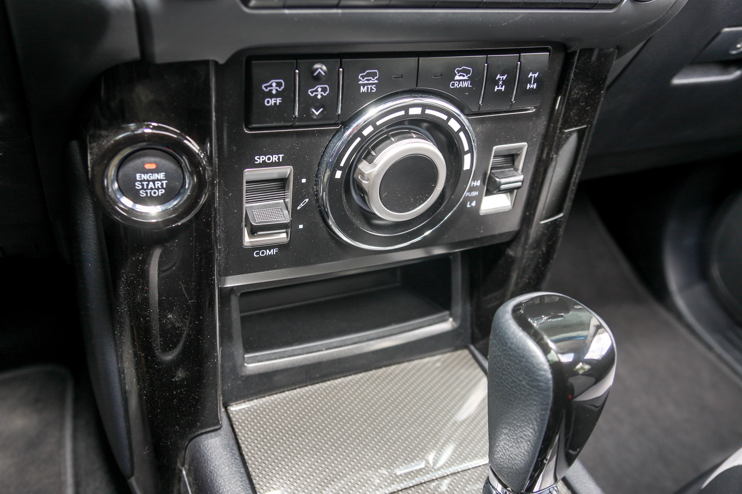 Terepválasztó (sziklás, laza köves, köves földút, buckás és sár programokkal), négykamerás terepmonitor, kerékelfordulás-kijelző, hátsó elektromos differenciálzár, terep-ABS, kúszónyomaték-szabályzó (hegymenet-vezérlő), lejtmenet-vezérlő, minden van túl azon, hogy állandó, alapból 40:60, alkalmasint 50:50-re vagy 30:70-re módosított nyomatékarányú a Torsen-diffis összkerékhajtás. És hogy alvázas, merevhidas a cucc. Hátul légrugóval. Állítható magassággal. A kinetikus dinamikus felfüggesztésnek hála a kerekek külön-külön rugózhatnak, s valamelyik biztos talál tapadást.