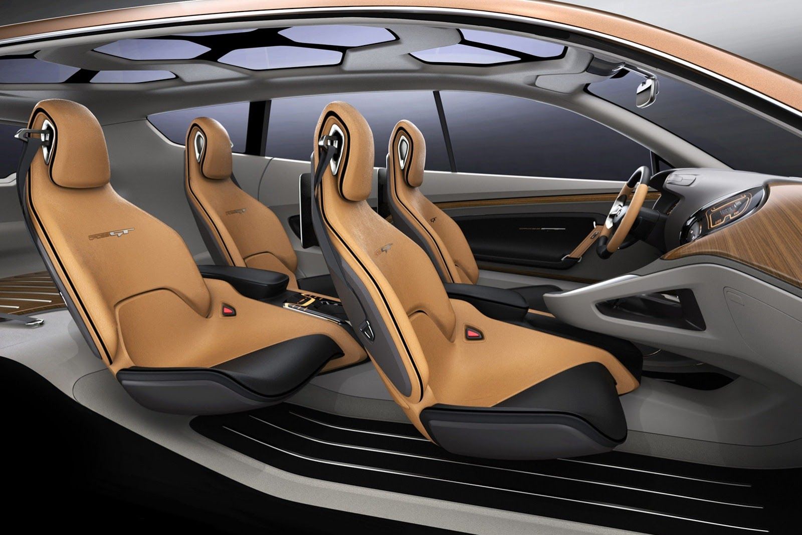 Az állítólag a márka leendő formavilágát is előrevetítő CUV (Crossover Utility Vehicle) tetőmegoldása és beltere szuperlátványos, viszont (ha elkészül) nem ez lesz a legügyesebb térkihasználású személygépjármű, annyi szent. Korábban hétüléses kabinról volt szó, a fotók bezzeg nem több mint négy kagylót ábrázolnak.
