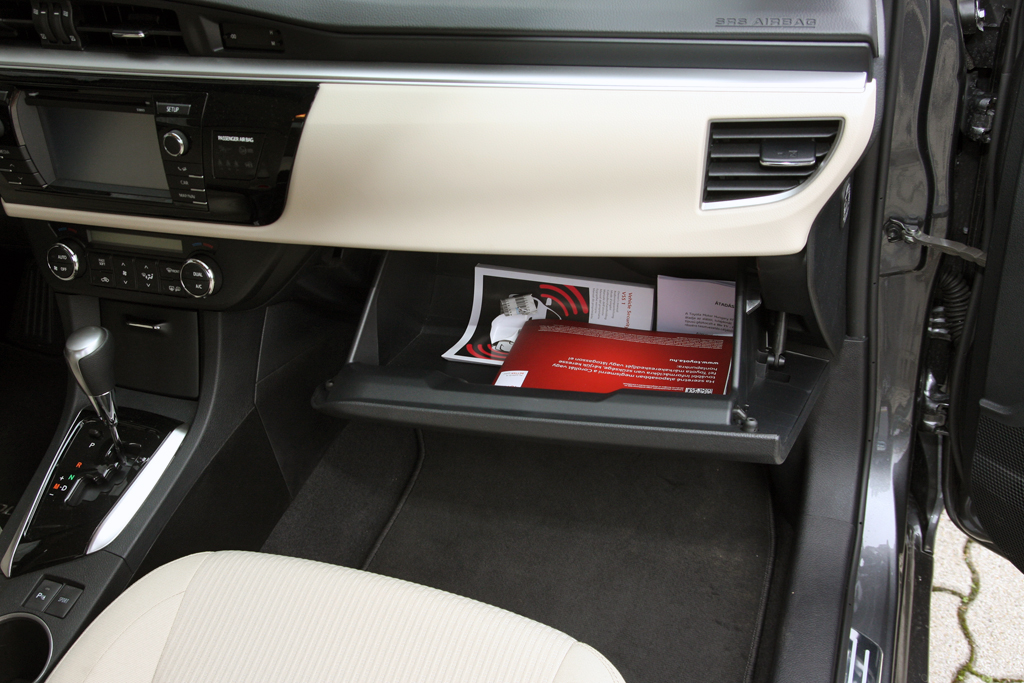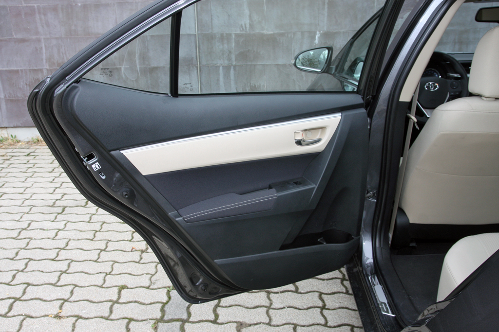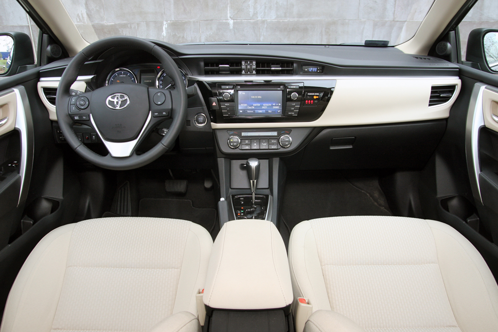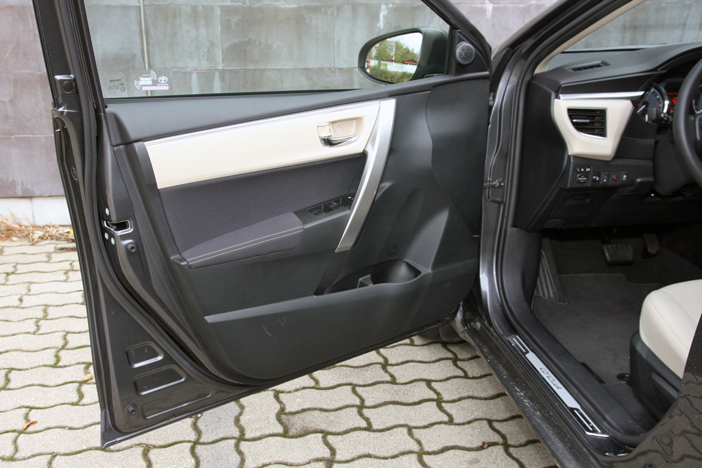 A műszerfal a vérrokonokból ismerős, Corolla-léptékkel nagyon más, mint az elődnél. A szent kvarcóra megvan, a minőségérzet rendben, a vízszintes tagolás, a hangulat nyugalmat, békebeliséget áraszt. Az ülés közepesen kényelmes, kemény, tág határok közt állítható, elég mélyre is engedhető. A kormányoszlop tengelyirányban viszont alig pár centit mozog, ez igazából érthetetlen.