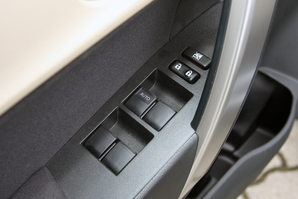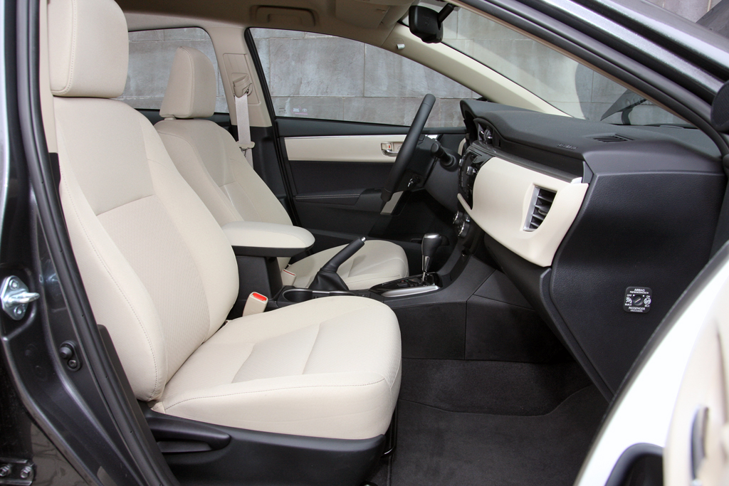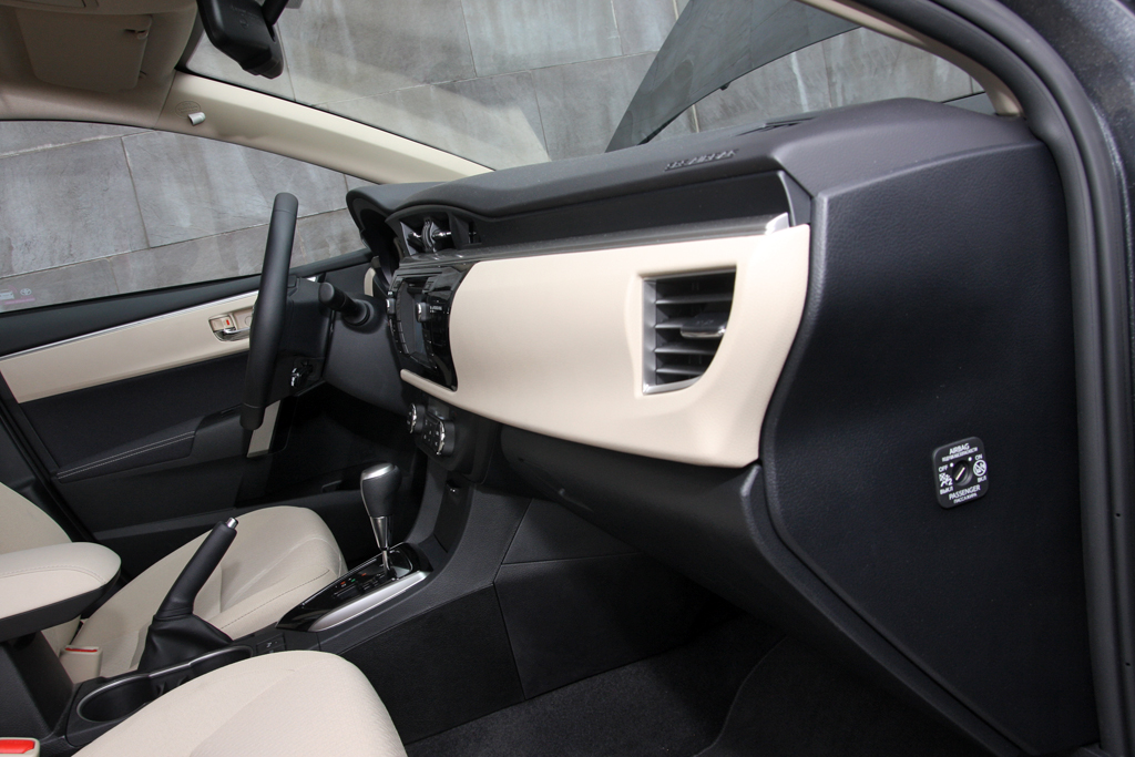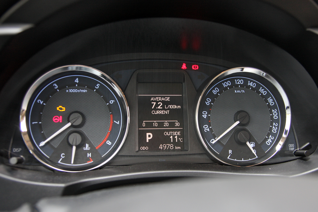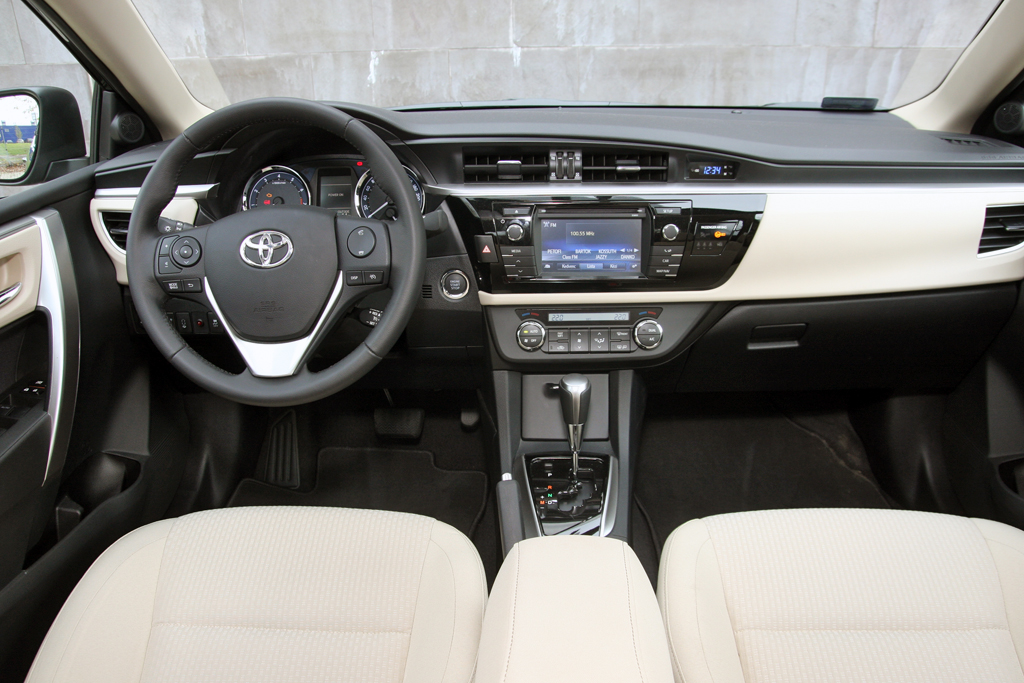 A műszerfal a vérrokonokból ismerős, Corolla-léptékkel nagyon más, mint az elődnél. A szent kvarcóra megvan, a minőségérzet rendben, a vízszintes tagolás, a hangulat nyugalmat, békebeliséget áraszt. Az ülés közepesen kényelmes, kemény, tág határok közt állítható, elég mélyre is engedhető. A kormányoszlop tengelyirányban viszont alig pár centit mozog, ez igazából érthetetlen.