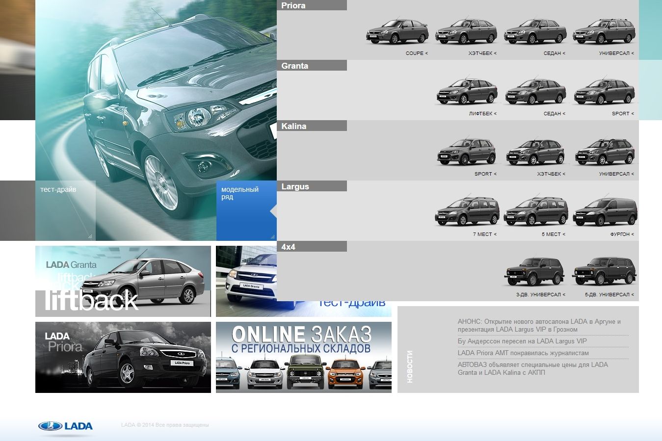 Remek, informatív a Lada honlapja[/url], ez itt épp a kínálat, van „onlájn szakasz is. Kár, hogy csak oroszul érhető el