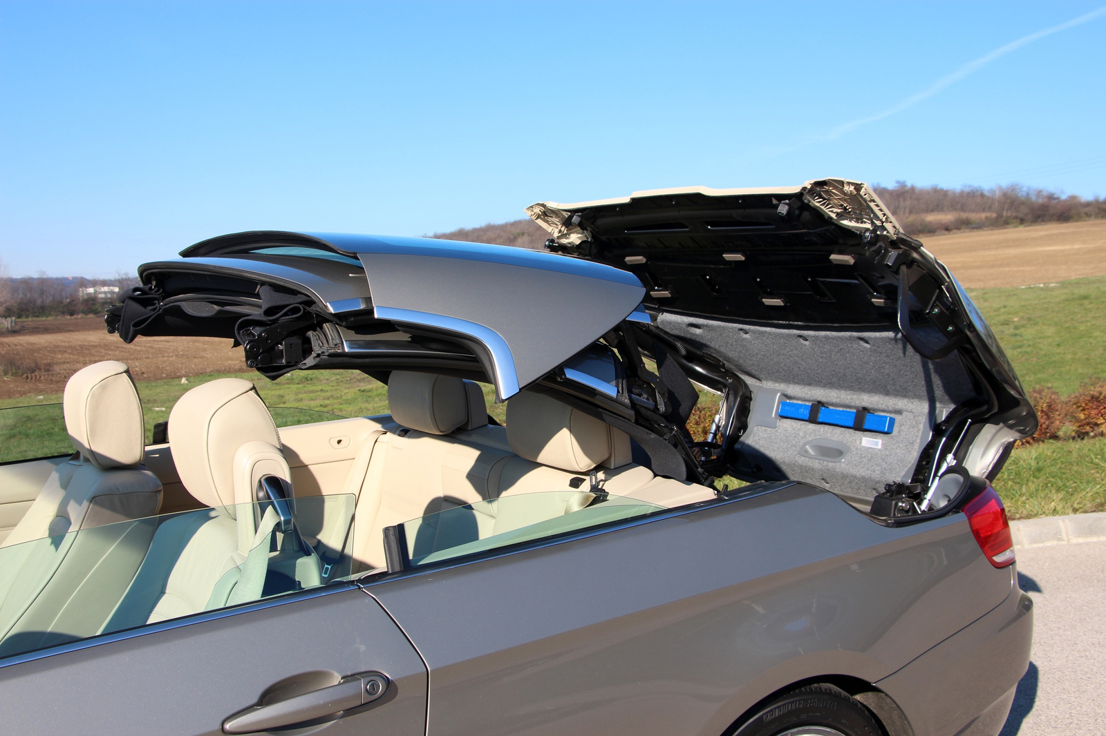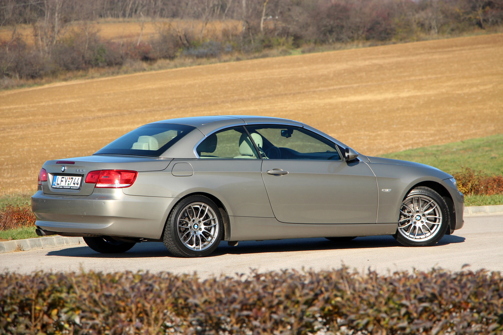 A középkategóriás méretű, közel 4,6 méter hosszú, 2,76 méter tengelytávú kupé-kabrió, gyári kódnevén E93-as 3-as csalóka. Kívülről nem tűnik nagynak, pedig az. Parkoláskor, utcán forgolódáskor kell is vigyázni, főként amiatt, mert az autó alacsony, nem érdemes a járdákra rátolni az orrát, mert azokon sanszosan leérne. Három részből összeálló alumínium tetejét akár távirányítóról is tudja nyitni, illetve zárni, igaz, csak álló helyzetben, és nem is túl gyorsan. Viszont az alapvetően kupénak kinéző (és zárt tetővel úgy is viselkedő) autónál már ez is nagy szó, hogy tudja nyitni a tetejét, azaz nem csak kupé, hanem kabrió is. Sokak szerint ez úri hóbort, érvelésük szerint télen, azaz az év döntő részében kihasználhatatlan lehetőség. Pedig nem az!