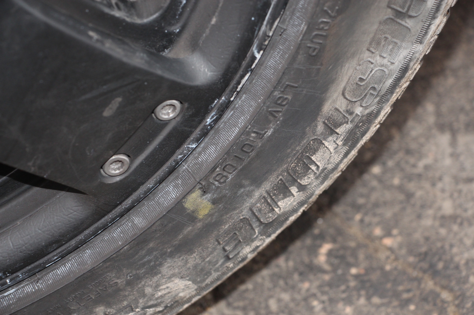 Az én téli gumim, 2009-es. A mintázata, alig kopott, de már tavaly is éreztem, hogy nem az igazi, mert egy enyhén emelkedő, jeges felhajtón, csak lendületből tudtam átmenni. Korábban, nem tapasztaltam ilyet. Nem volt keret újra, így, a sebesség megválasztásakor, igyekszem kalkulálni, ezzel.