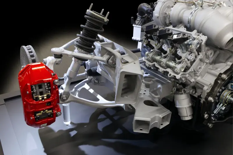 „hot V” konfiguráció révén minden hengersornál, a hengersorok között kapott helyet a két turbó. A motor különlegességei közé tartozik a száraz karteres olajozás és a szokásosnál vékonyabb olajteknő, a szénszálas nyomatéktengely, illetve a villanymotorral kiegészített transaxle egység, amelyben új fejlesztésű, olajfürdős kuplungos nyolcfokozatú automata váltó és mechanikus önzáró differenciálmű pihen. A sorozatgyártott példányok maximális rendszerteljesítménye legalább 650 lóerő lesz, míg a maximális rendszernyomaték célértéke legalább 850 newtonméter.