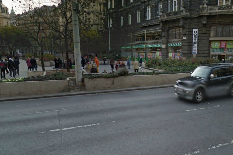 Már düledezett a virágtartós rész, de a betonsáv – ránézésre legalábbis – adott valami védelmet. A kép 2011 novemberi, archívumként az enyhe fáziskésében lévő Google Street View segítségét használjuk