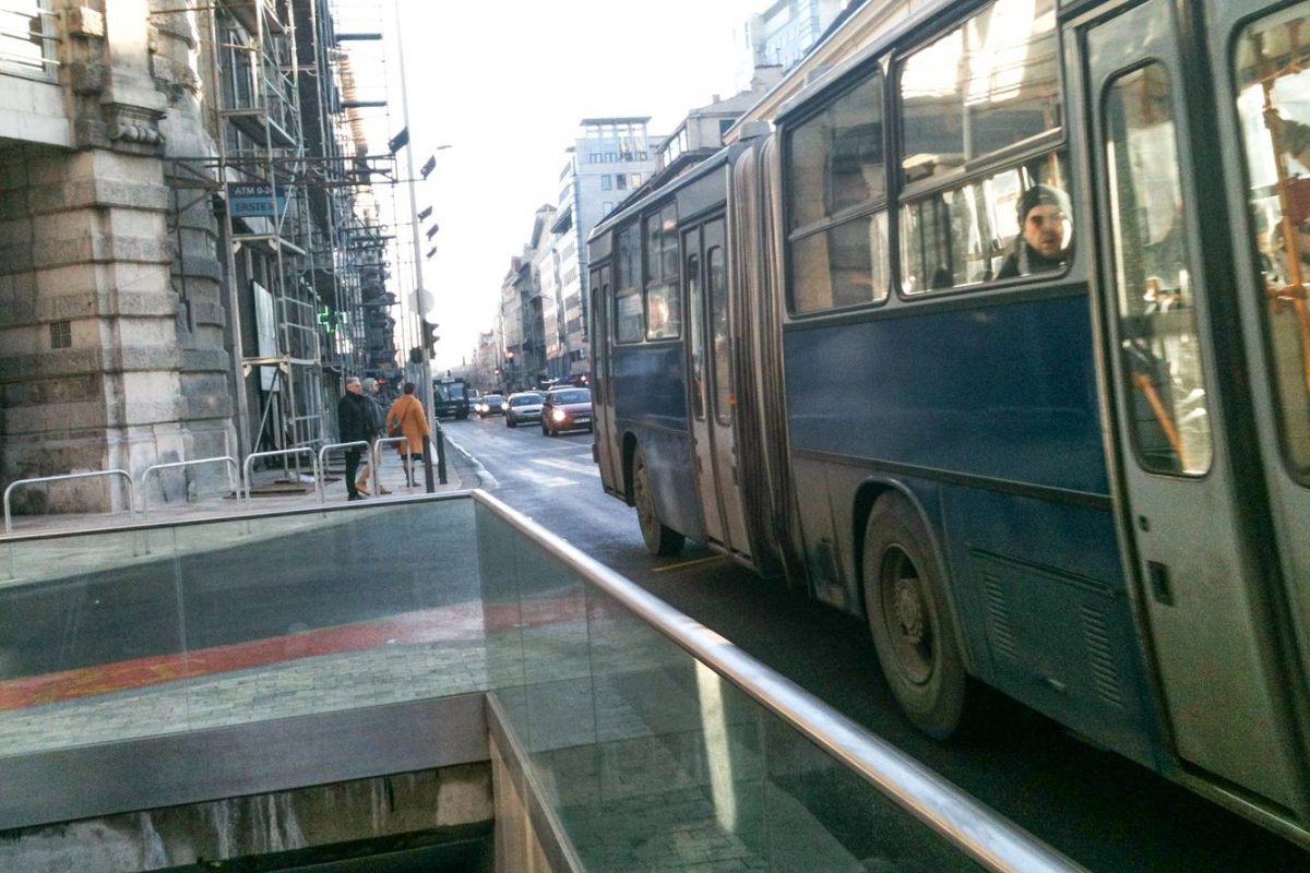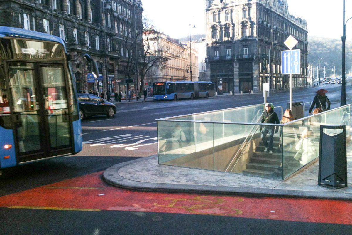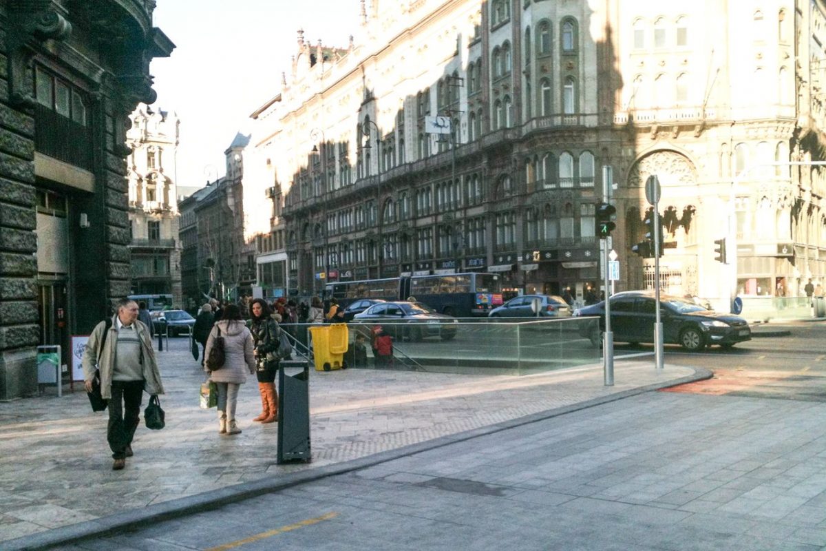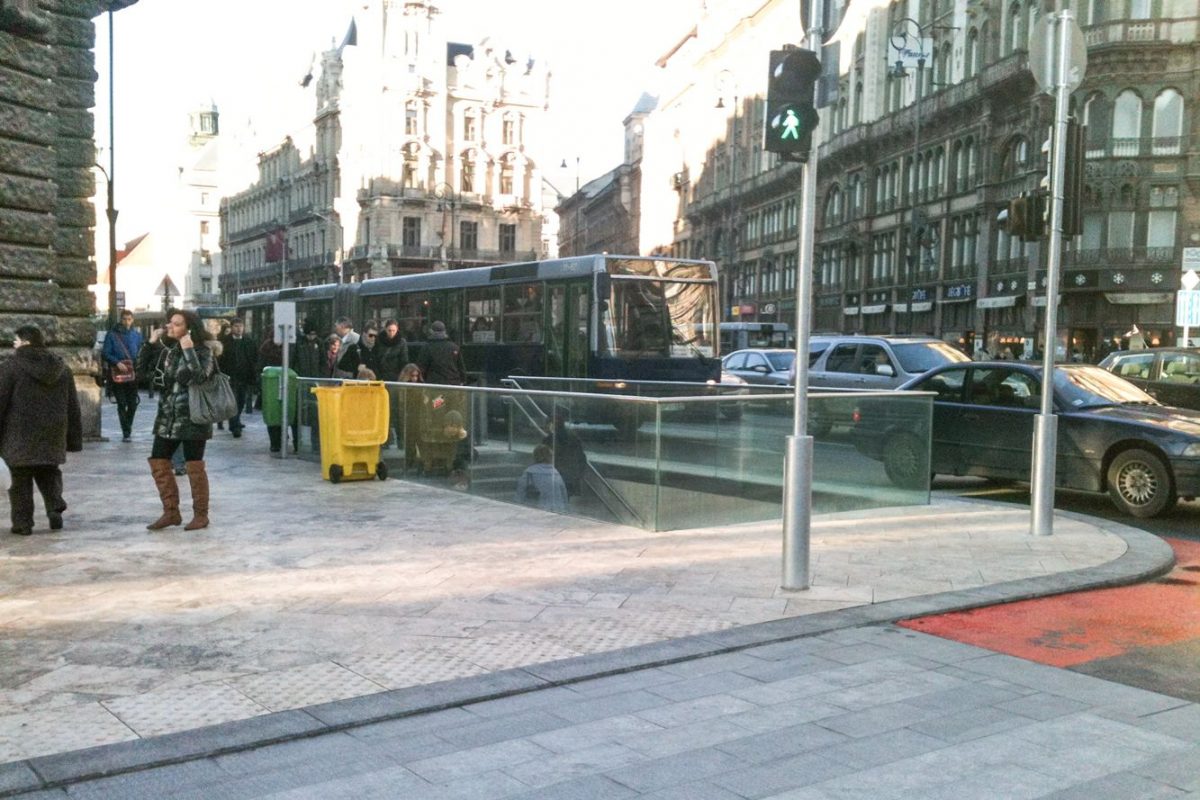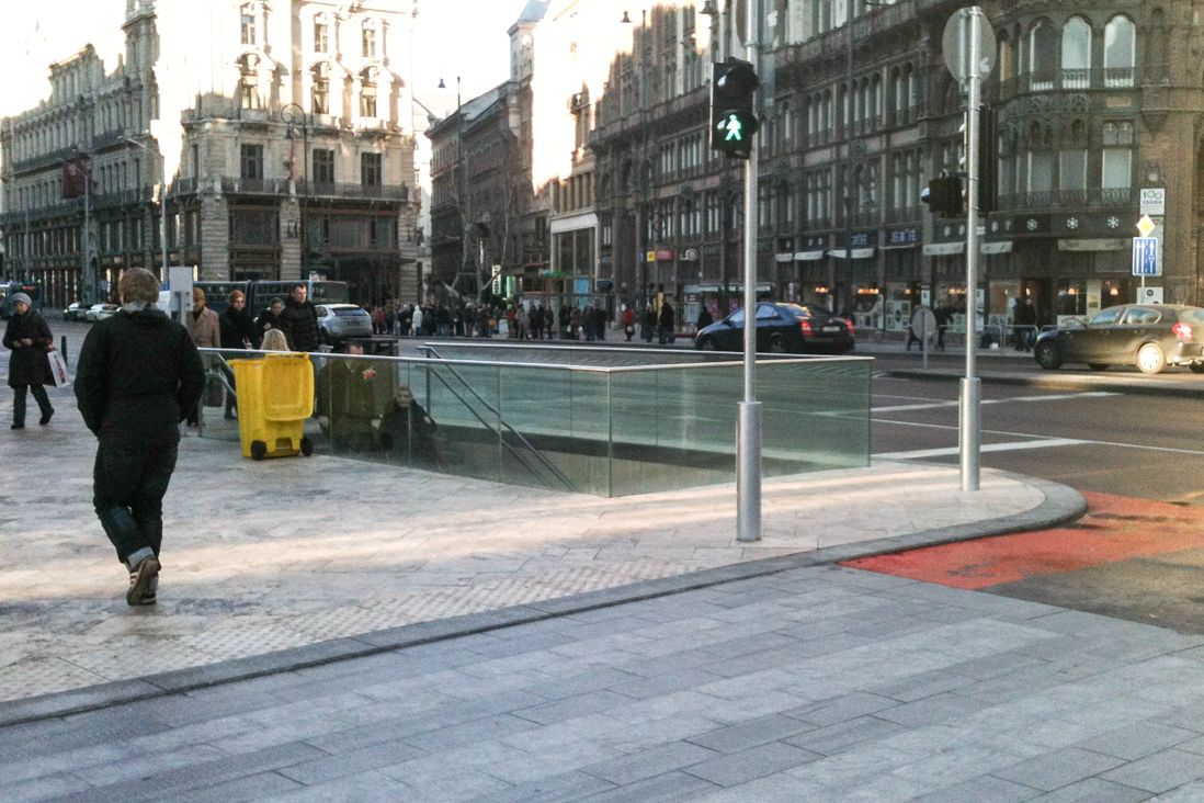 Javában folyik a fővárosi Ferenciek tere átépítése. A közlekedési csomópont a Budát Pesttel összekötő (Hegyalja út – Erzsébet híd – Rákóczi út) vonal kardinális pontja, mert a Budáról és a budai agglomerációból érkezők nagy része itt száll fel a 3-as metróra minden munkanap reggelén – köztük én is. Maga a tér nagyjából már kialakult, a felszín szinte kész, ezekben a napokban a metróaluljáróban nagy még a fúrás-faragás. Összességében az új kialakítás a melegebb színekkel és a friss ültetésű fákkal nekem tetszik, a lerakott burkolat minőségét a fusiban dolgozó szomszéd mestertől sem fogadnám el, de ezt most hagyjuk. Több hete jártam-keltem már az útvonalon, mire feltűnt, hogy a metrólejárat alig van védve a korábbihoz képest.