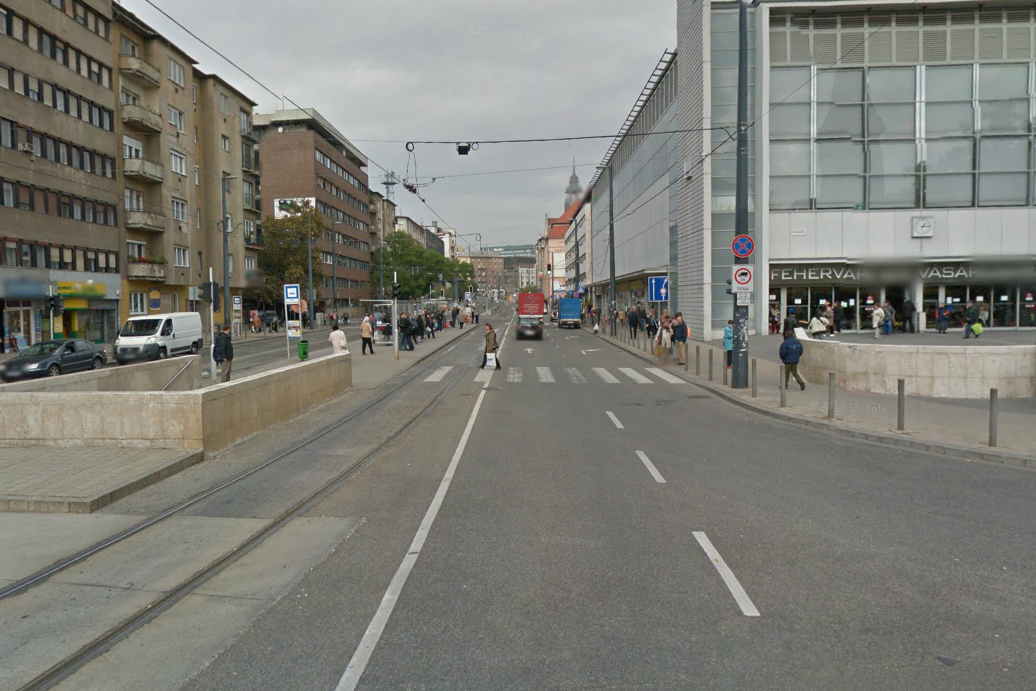 Budán a Fehérvári út és az Október huszonharmadika utca kereszteződése. A 4-es metró még kész sincs, de a lejáratokkal egy időben kialakított aluljáró már igen. Ide masszívabb korlátot építettek pár évvel ezelőtt
