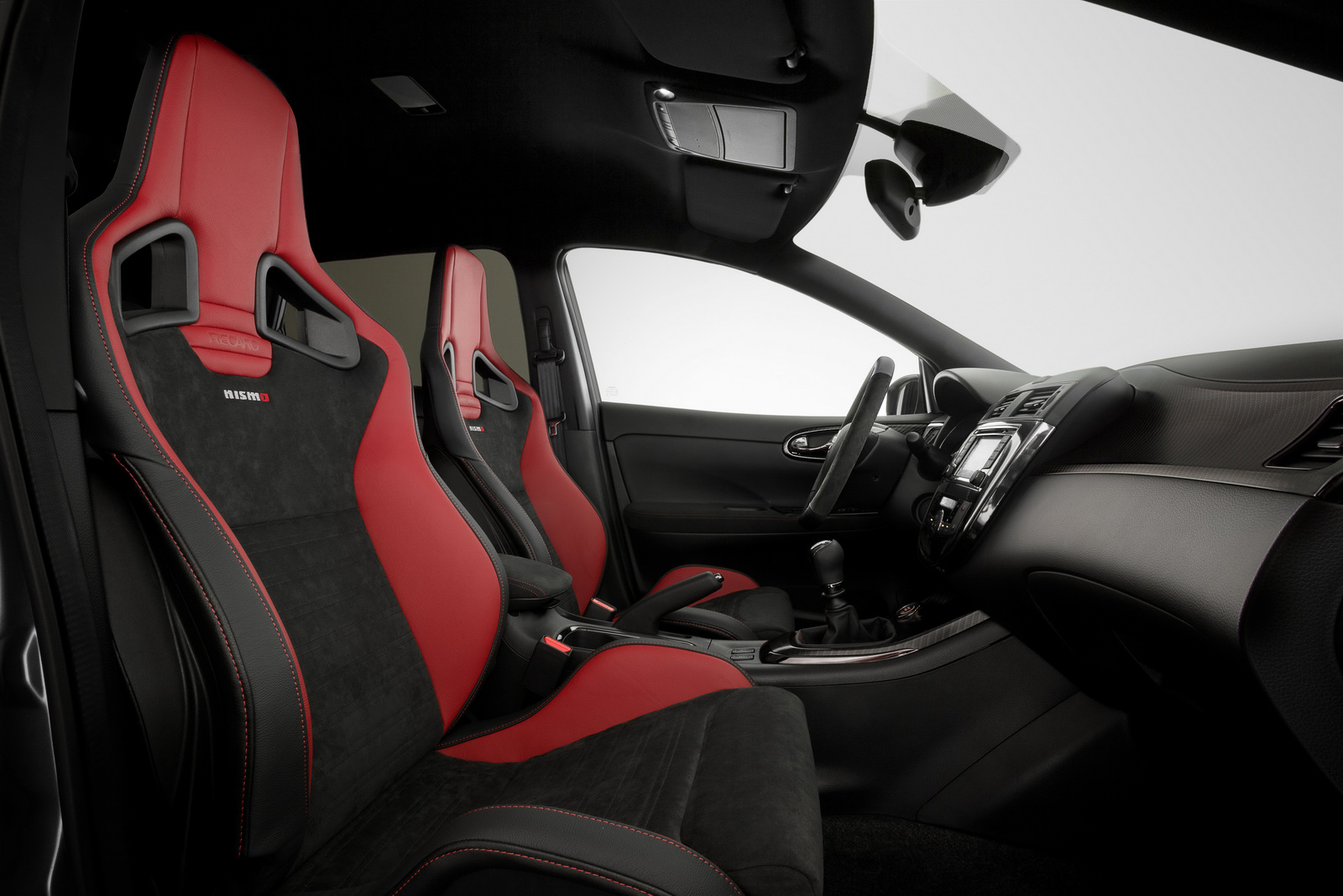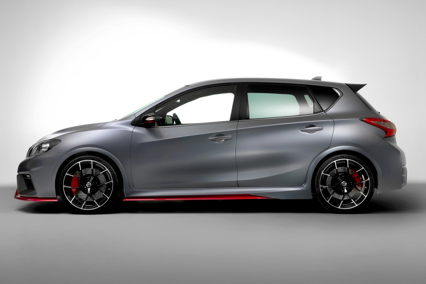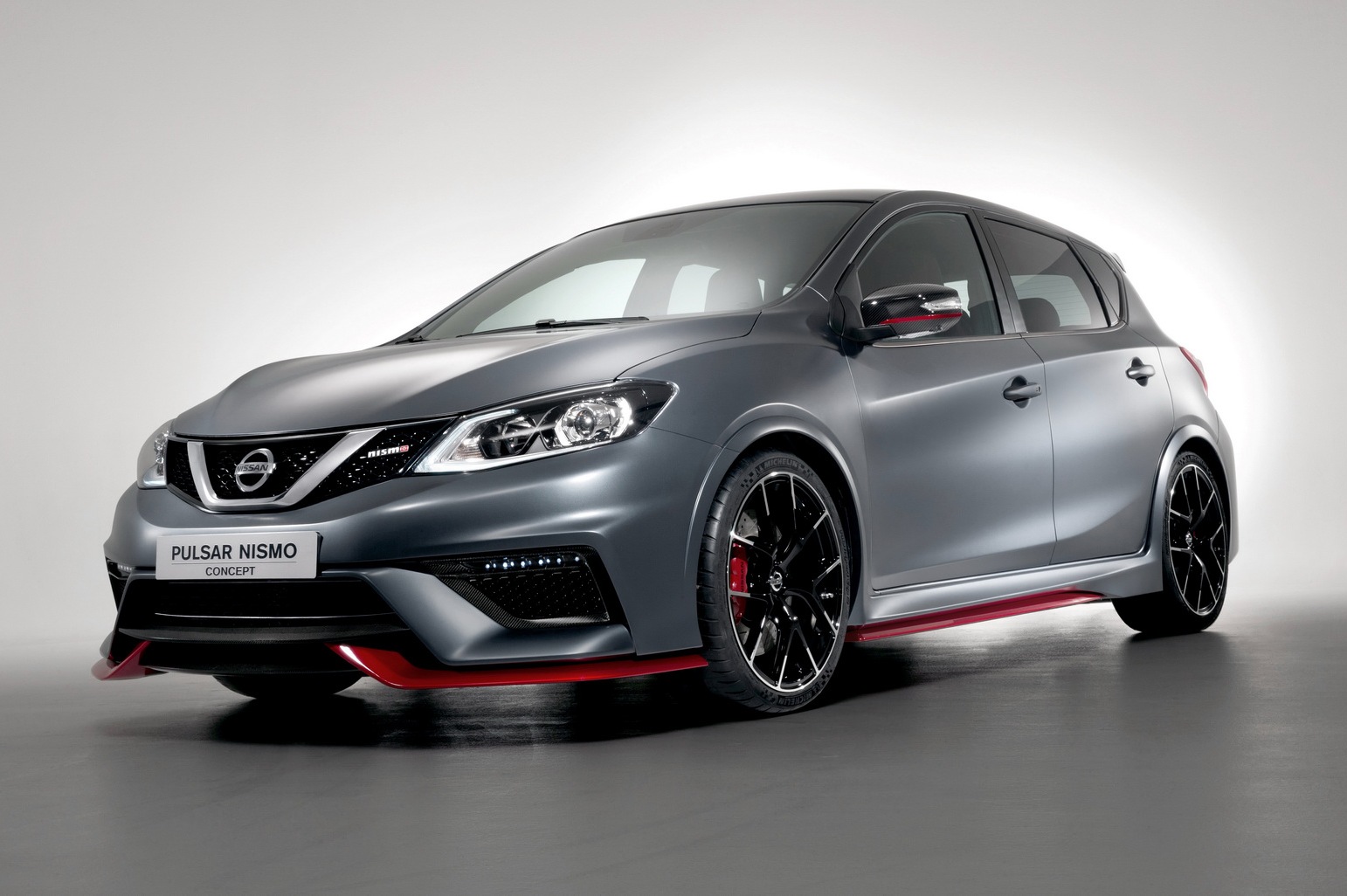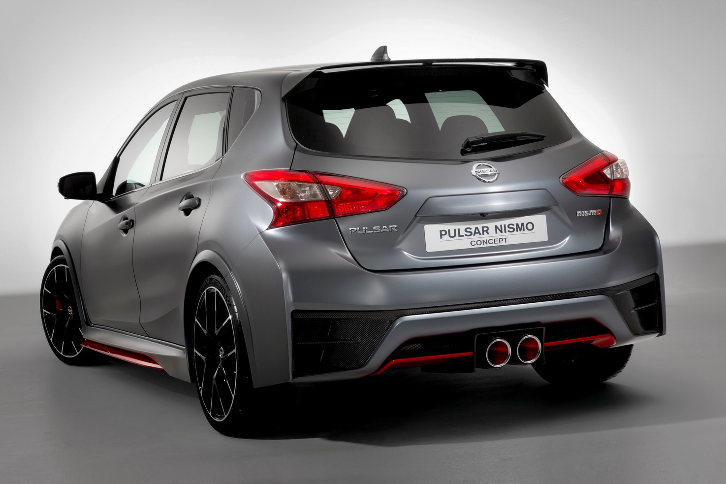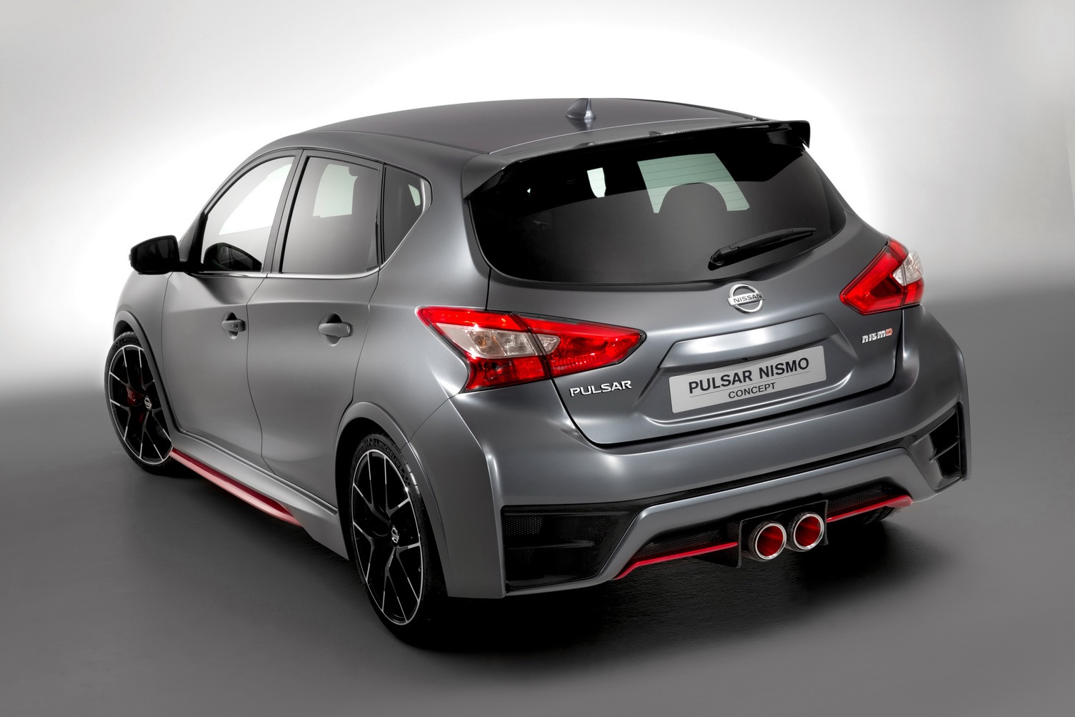Mélyre lógó lökhárító, széles kerékjárati ívek, óriási légbeömlők és dupla kipufogó a hátsó diffúzor közepén. Kívülre jutott némi karbon díszbetét, a beltérbe meg sportkormány, integrált-fejtámlás kagylóülések és némi piros szín, hogy nehogy morcosak legyünk a nagy feketeségtől. A kerekeken 235/35 R 19 méretűek a gumik, a hátsó tetőlégterelő karbonszálas műanyag. A Nissan egyelőre csak annyit közölt, hogy ez a koncepció hivatott megmutatni a Pulsar sportosításában rejlő lehetőségeket. Csak annyit árultak el róla, hogy a szériakivitelénél közvetlenebb kormány és természetesen keményebb futómű van benne, illetve alatta. A motor mérete és ereje még nagy titok, de ha arra gondolunk, hogy a sima Pulsarban az 1.6 DIG-T 190 lóerős, akkor logikusan legalább 250 lóerő körüli teljesítménnyel lehet számolni. Bár ez még csak egy tanulmány, ha nem is Nismo, de lesz erősebb és sportosabb Pulsar, az biztos.