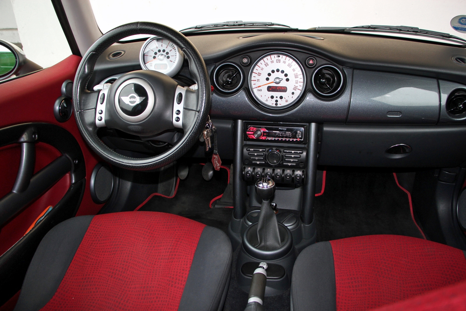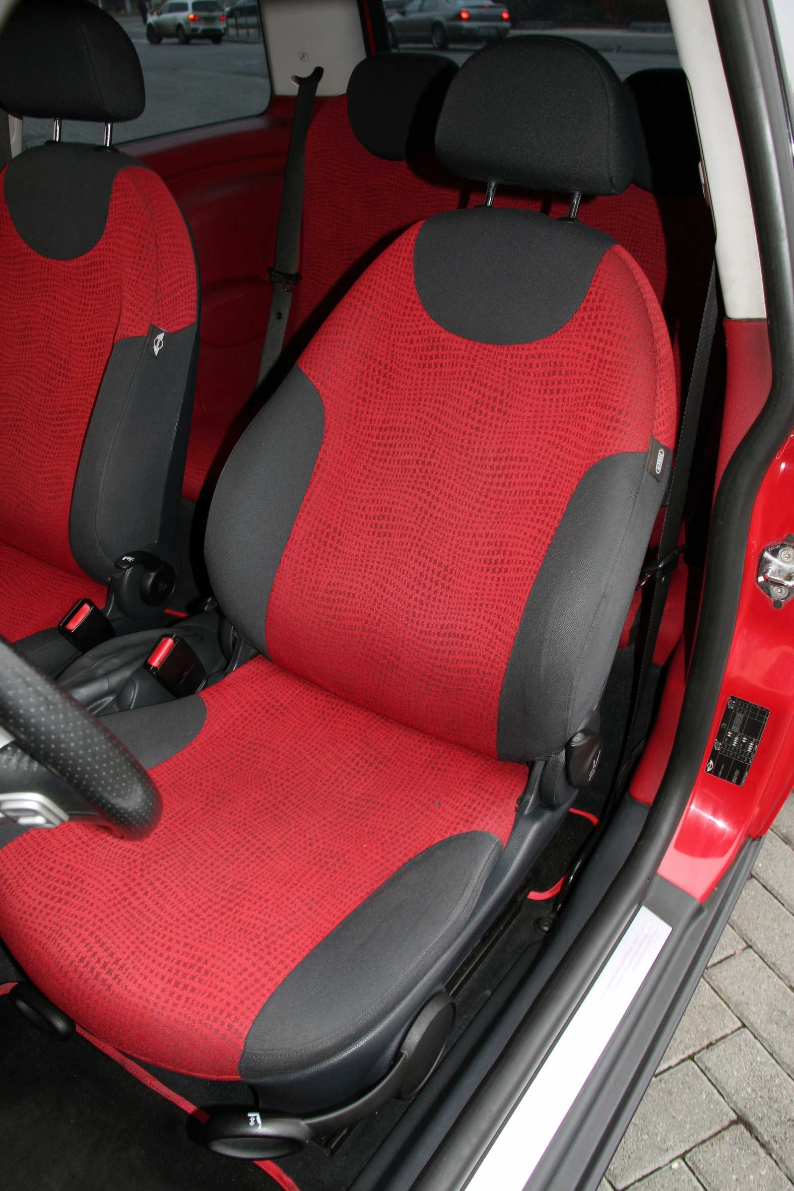 A Mini egészen szép belül is. Nem csak üléseinek borítása, egészen igényes utastéri plasztikjainak egy része is piros. Azokon nem, az ajtózsebeknél lévő kályhaezüst-betéteken látszik a kor: széleiknél már kilátszik az ott alkalmazott műanyag fehér alapszíne. Az oldallufis székek sok tartást nem adnak, de kényelmesek, a hátrajutást nem csak előredőléssel, hanem –siklással is segítik. Igaz, az így sem egyszerű. Hátul (is) jó a fejtér, illetve a kétszemélyes padon a szélesség is, a lábtér viszont szerény. Ennek ellenére szinte minden minis kiváló történeteket tud, hogy hárman-négyen még az amúgy parányi, 160 literes csomagtérrel is egészen komoly külföldi túrák teljesíthetők. Csakis vidáman, ugyanis a minisek olyan emberek, egymásnak is villantással köszönnek.