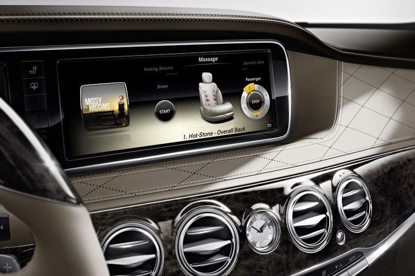 Az utastérben is folytatódik a karosszéria kecsessége, LED-es hangulatfény világítja a 12,3 colos központi kijelzőjével teljesen egyedi műszerfal által meghatározott belteret. A hátsó utasokat az első fejtámaszokba épített táblaszámítógépek szórakoztathatják, alap, hogy nem csak utóbbiak, a zsebkészülékek is kaphatnak internetet az autótól. Az ülések hűthetők, fűthetők lehetnek, s a szellőzőpontok nem csak ülésenként, egyenként is szabályozhatók. Az utastérbe nem juthat akármilyen levegő, a szellőzőrendszer nem csak azonosítja a kellemetlen szagokat, hanem ionizációs légtisztítójával hatástalanítani is igyekszik azokat, hogy belül semmiképp se legyenek érezhetőek. A külvilág kellemetlenségeit, például az úthibákat a futómű is előrelátóan kívánja kiszűrni, az utat pásztázó kamera jelei szerint is adaptív a felfüggesztés, s természetesen az utasvédelmi rendszer is jövőbe tekintő, Pre Safe bélyeges.