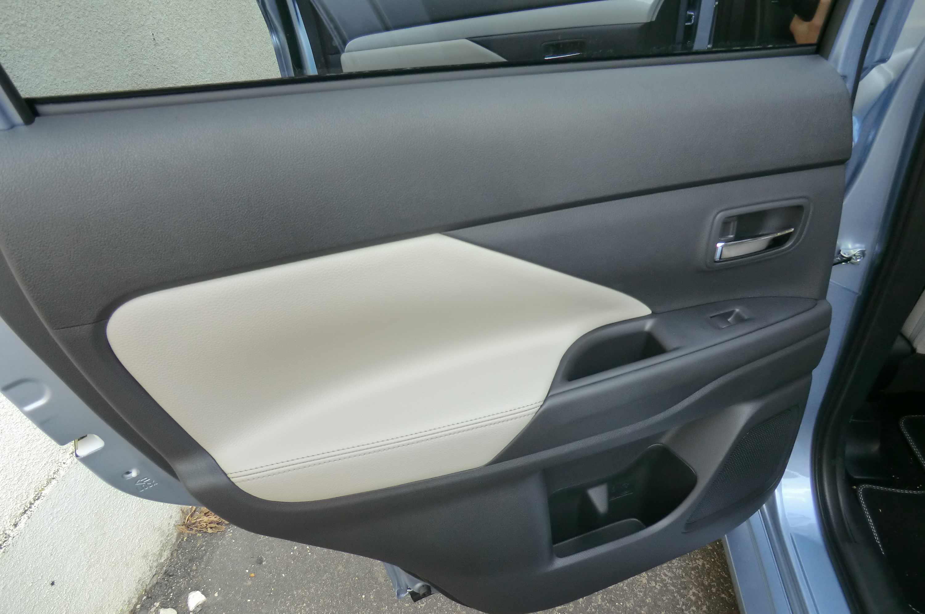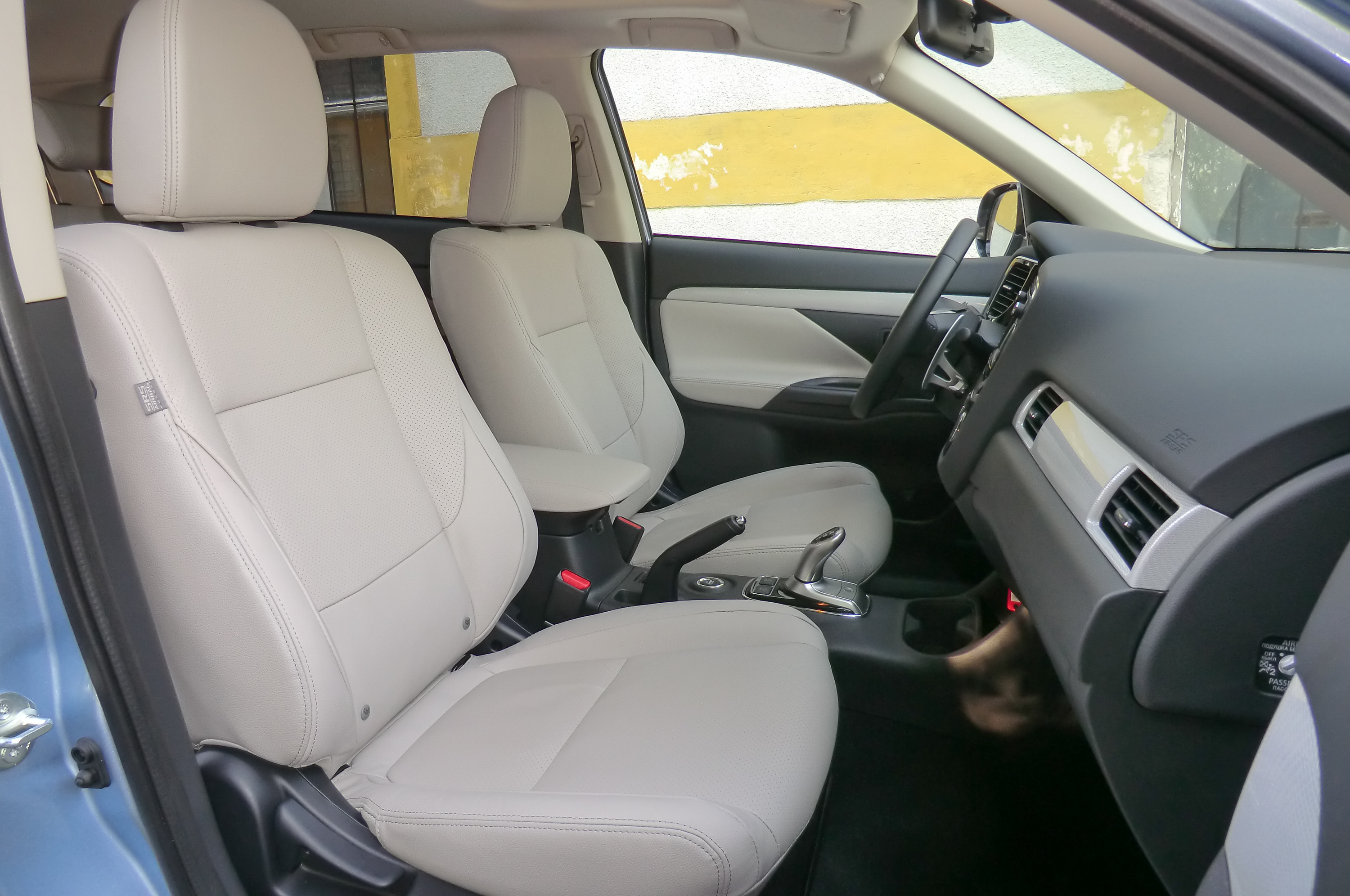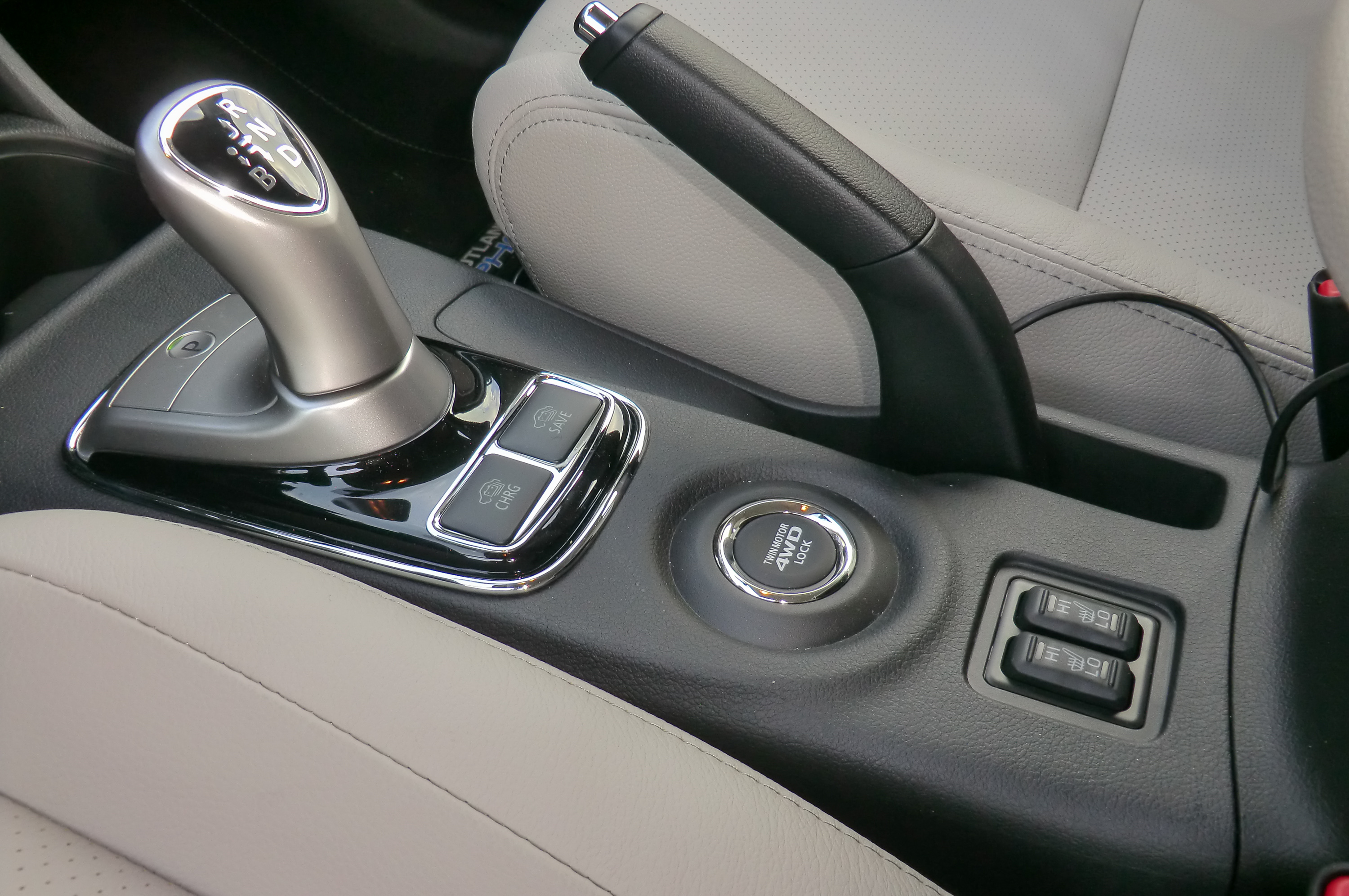 Az utastér jellegzetessége, hogy alig van különlegessége. Kívülről is leginkább csak feliratairól, illetve kétoldali „tanksapkájáról” ismerhető fel a PHEV. Japán szokás szerint a sofőroldali a benzintank nyílásának fedele, a jobboldali pedig a töltőcsatlakozóké. Kettő is van, a kisebbik a hagyományos-, a nagyobb a gyorstöltőhöz. Az utastérben a többi Outlanderétől eltérő a műszerblokk, a középkonzoli kijelzőn a hajtás és az energiaáramlás ábrái, diagramjai is megjeleníthetők. Örökség a 4WD lock gomb, amivel itt nem zárjuk fixre a nyomatékosztást, hiszen itt minden esetben van elöl-hátul hajtás, csupán forszírozott terepigényhez hangoljuk az autót. Túl komoly terepjellemzőket ne várjunk. Felező nincs, a hasmagasság 19 cm, az autó alá pillantva feltűnik, hogy hátul a legmélyebbre nyújtózó elem a kipufogó, könnyű azt leszakítani.