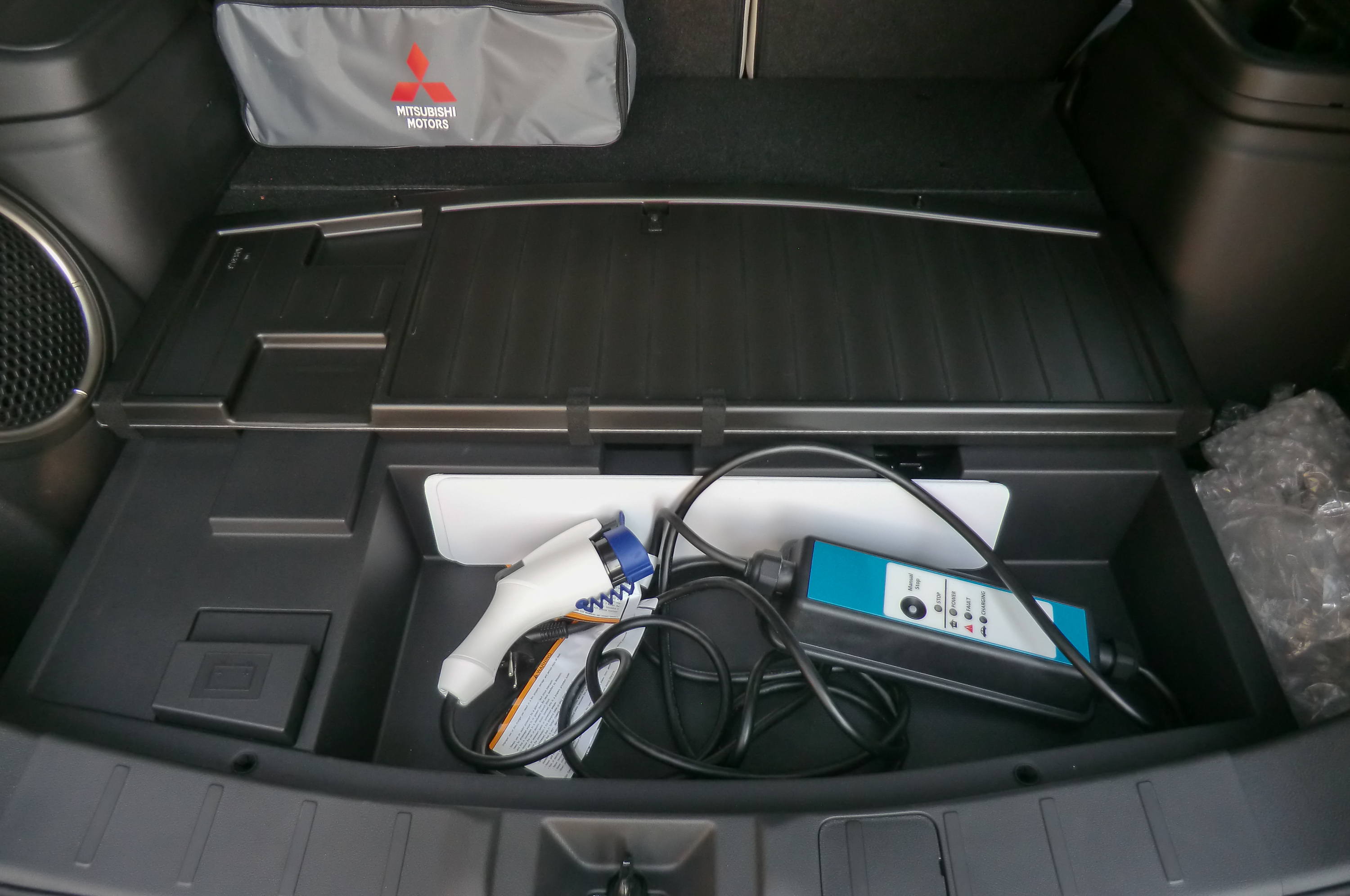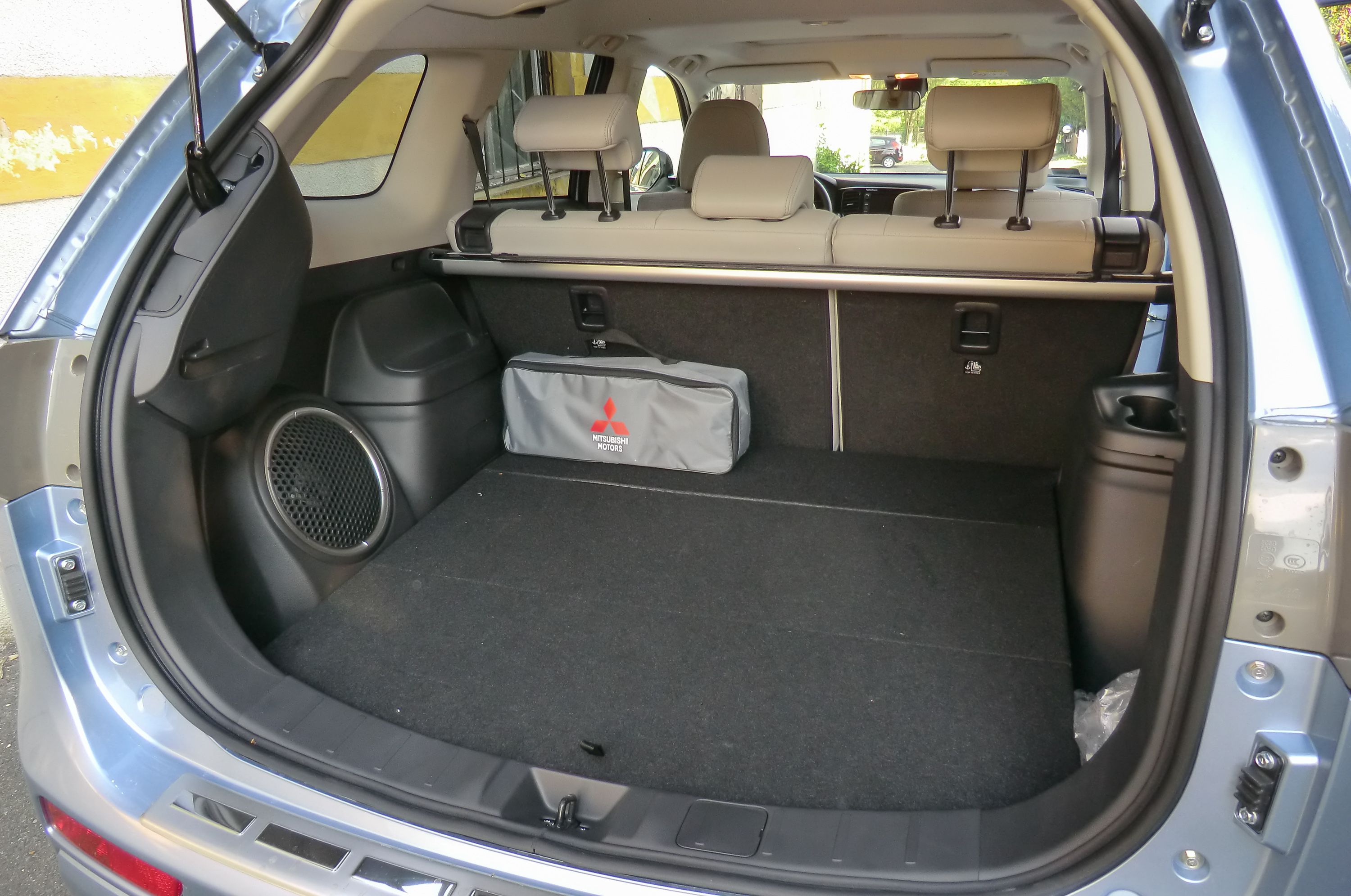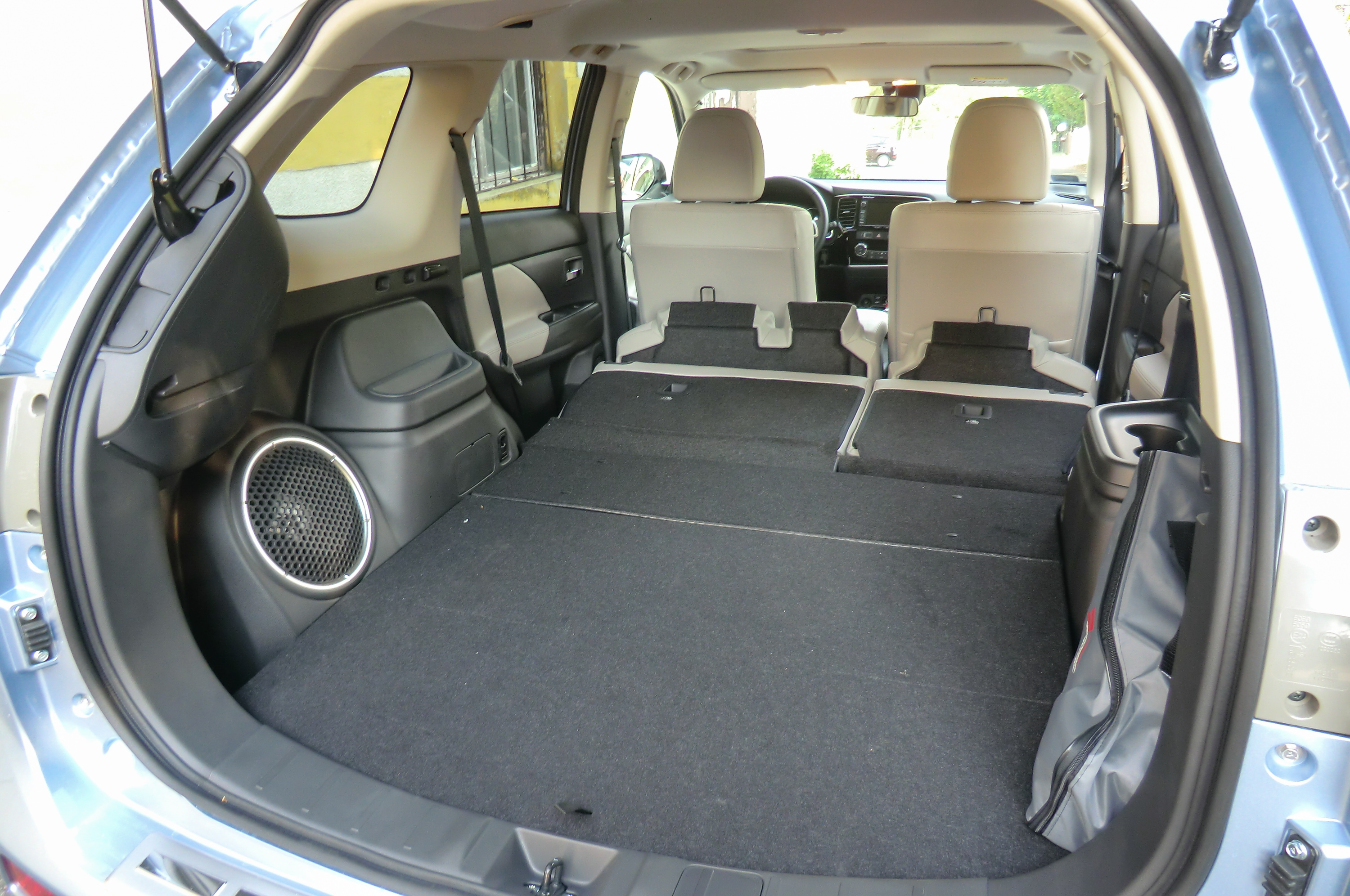 Míg a többi Outlander hétülésesként is rendelhető, a PHEV csakis ötüléses lehet. Csomagtere alatt szükségülések helyett a vezérlőelektronika utazik. A többi eltérés, a 19 mm-rel magasabb raktérpadló, vagy a hátsó ülésnél az akkumulátorok miatt 45 mm-rel magasabb padlólemez egyáltalán nem feltűnő. A csomagtérkapacitás 477 helyett 463 liter. A 1,5 tonnás vontatási kapacitás a dízelhez mérten 500 kilogrammal szerényebb, a hibridek körében óriási.