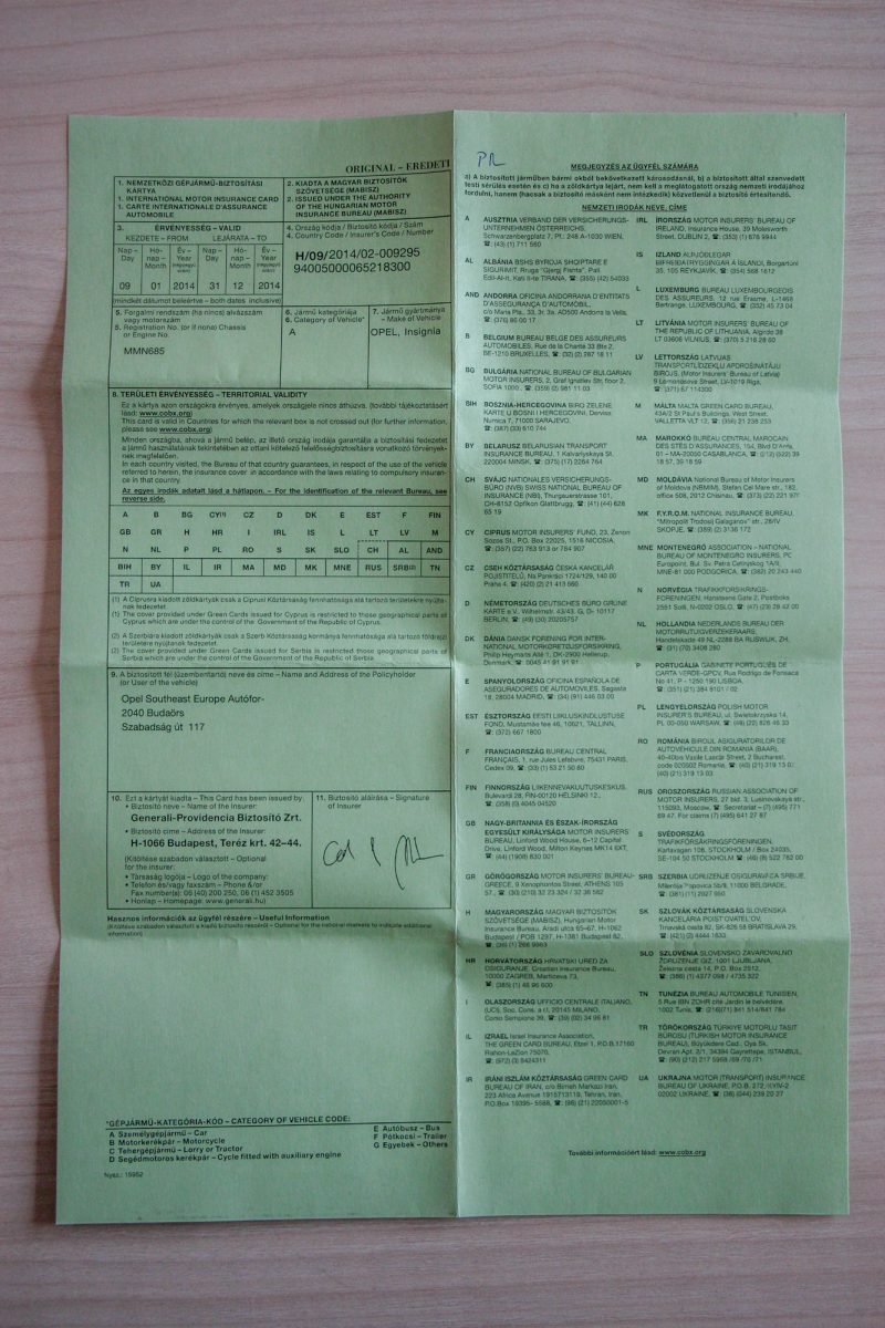 Nekem a biztosítóm – pedig volt több is – még soha nem küldött olyan zöld papírt, igaz nem is volt szükség rá, még nem utaztam olyan országba, ahol kellett volna.
