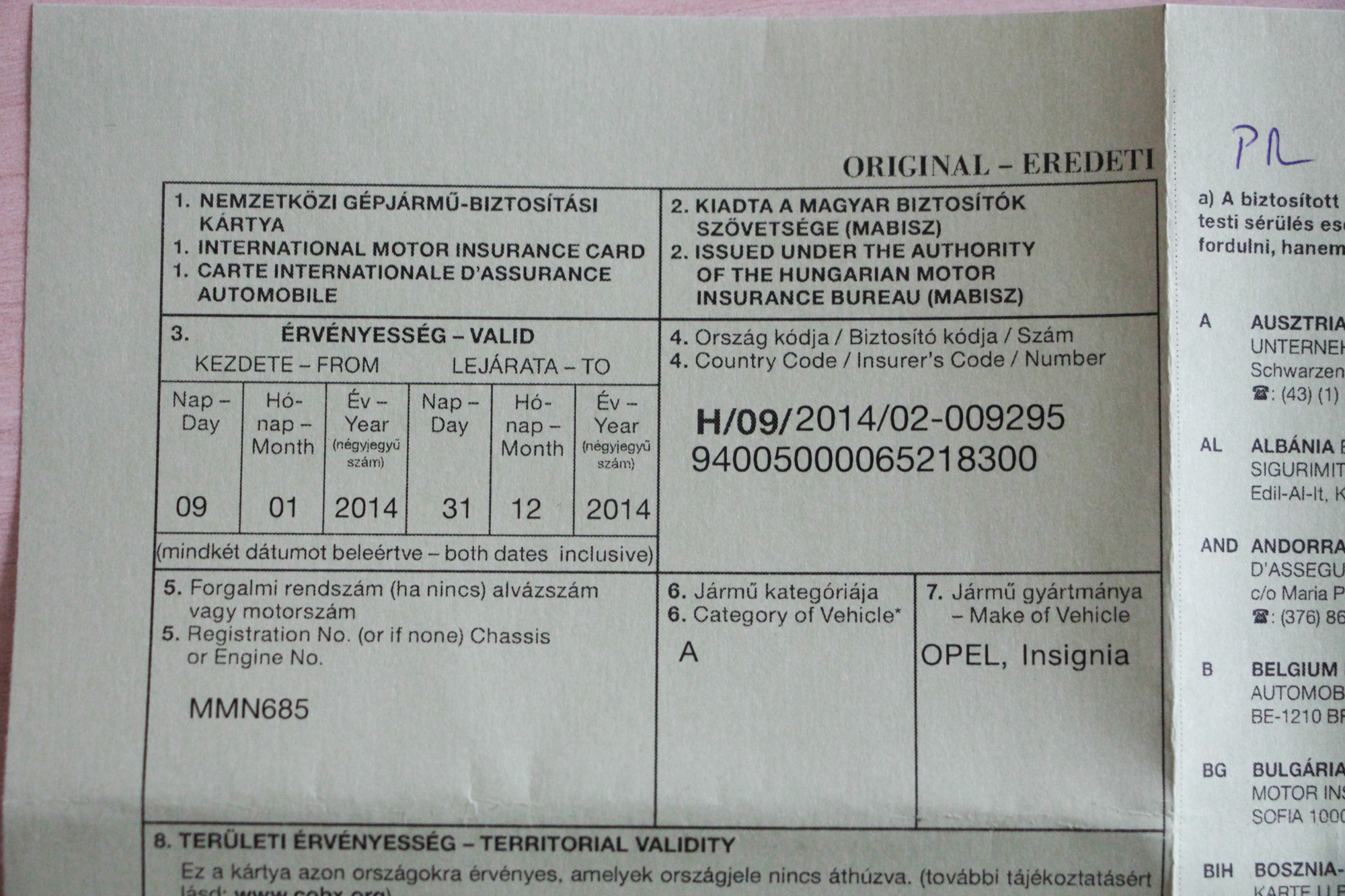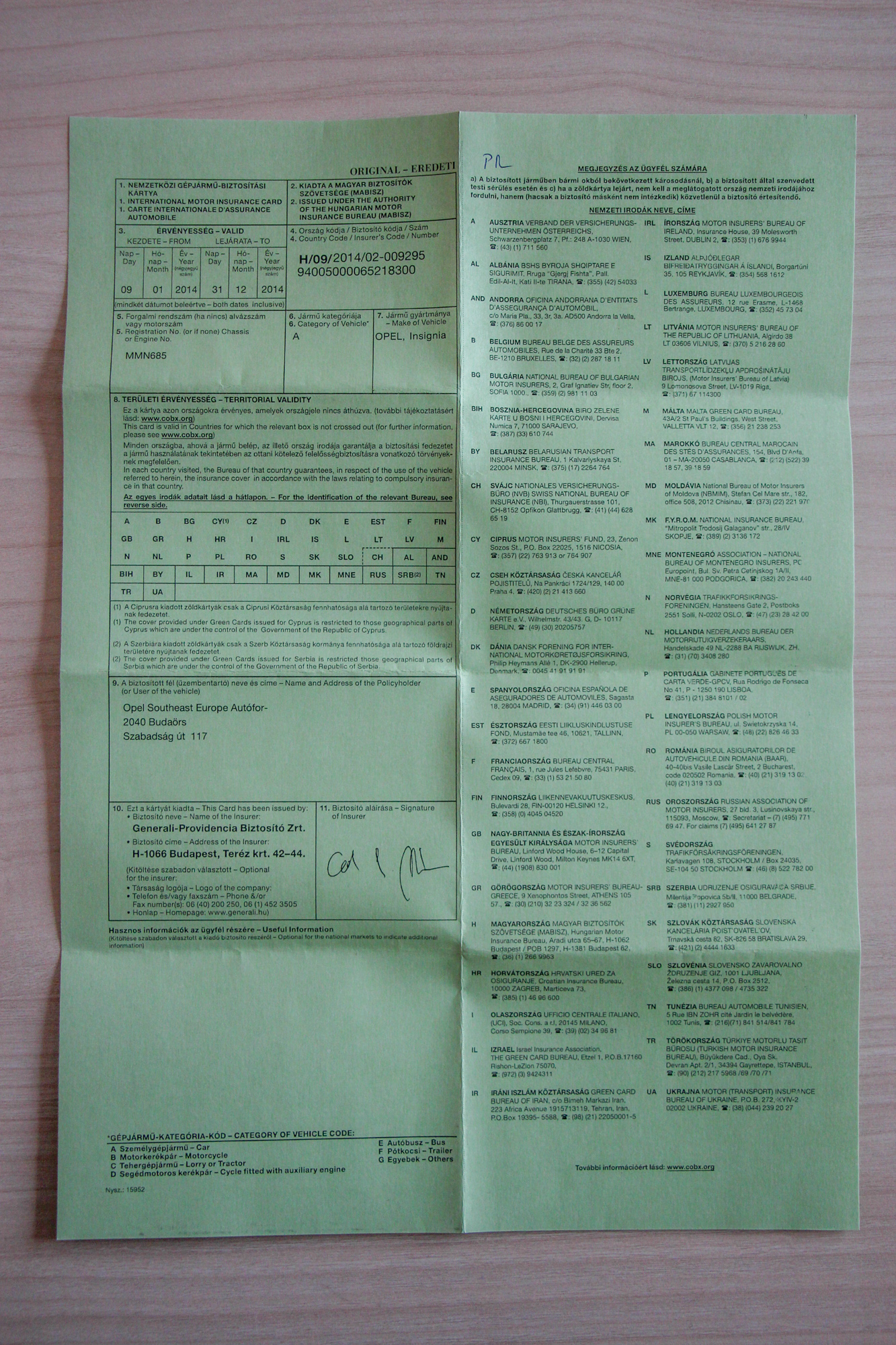 Nekem a biztosítóm – pedig volt több is – még soha nem küldött olyan zöld papírt, igaz nem is volt szükség rá, még nem utaztam olyan országba, ahol kellett volna.