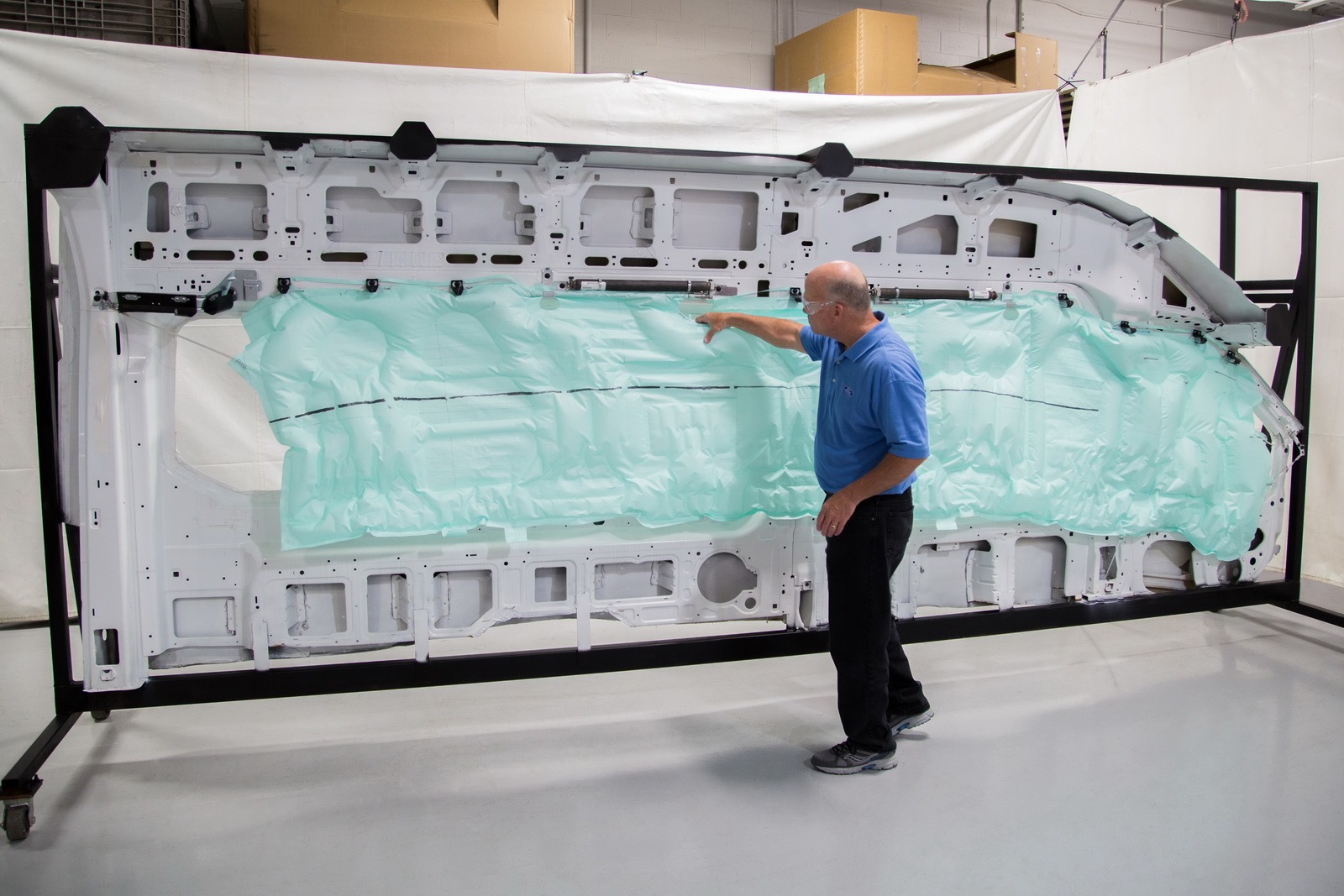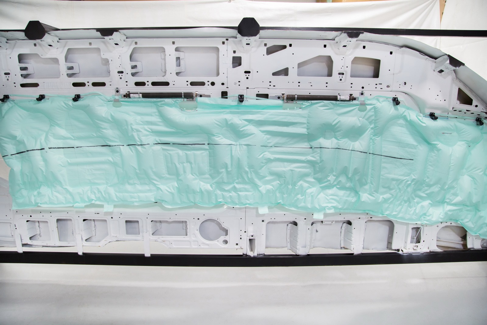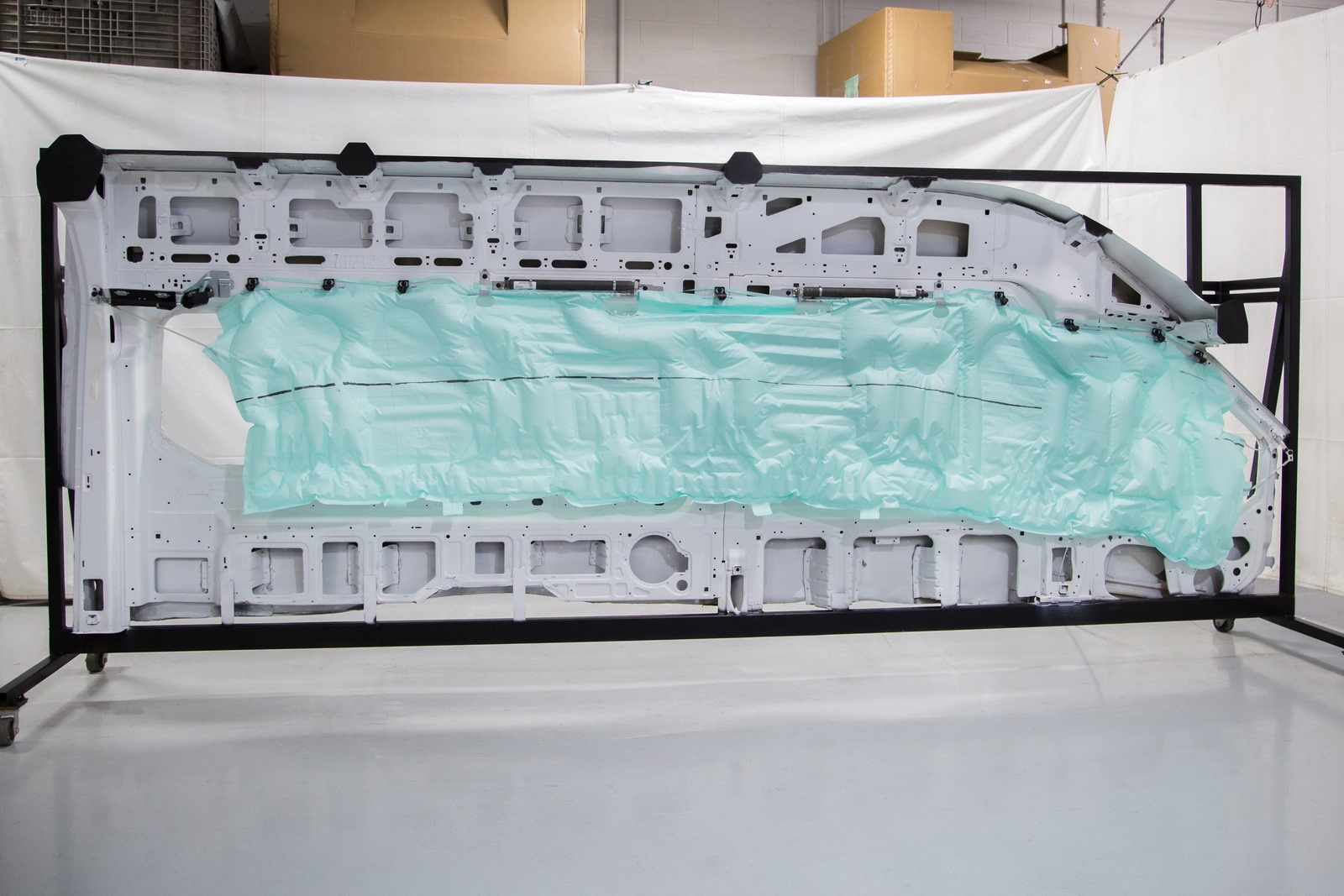 Ha jobban megnézzük a kialakítását, pontosan látszik, hogy az ülőhelyek mellet emberforma domborítás van kialakítva, hogy hatékonyabban működhessen. A nagy méret ellenére ugyanolyan hamar felfúvódik, mint a megszokott légzsákok, és ez is felfújva marad néhány másodpercig. A légzsák maga 4,6 méter hosszú, hosszabb, mint több átlagautó, és a TRW Automotive biztonságtechnikai beszállítóval együtt fejlesztette ki a Ford.