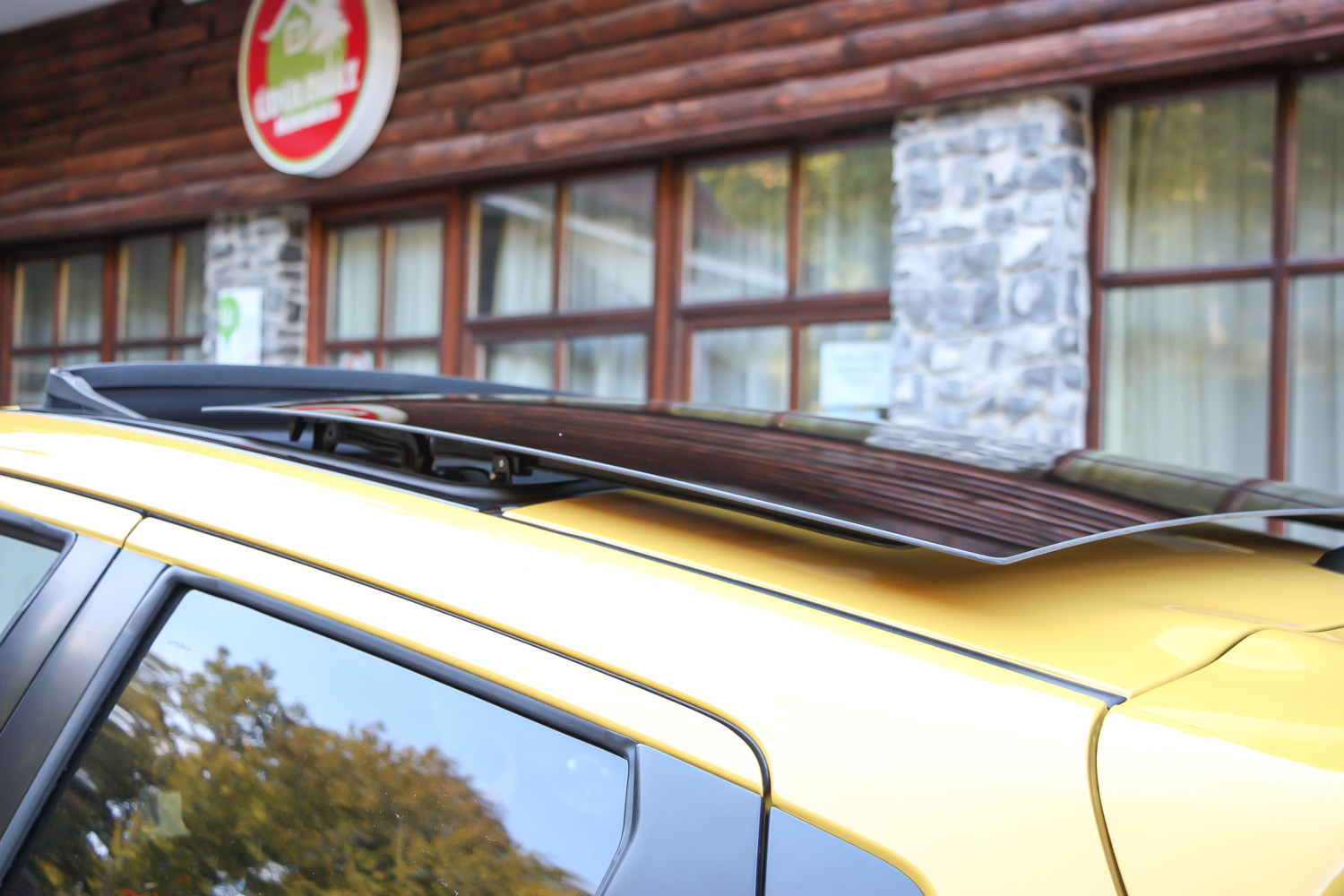 Van három új szín, ez a sárga, ami az autó bevezető színe és még egy új kék, valamint egy piros árnyalat. Újdonság, hogy négyféle színsémával is rendelhető, ami a tükrön, a lámpakereten, a felniken és a lökhárítóbetéten köszön vissza, meg a beltéri díszítőelemeken. Tartozékként ráadásul még többféle van ilyenből, így szépen testre lehet szabni a kocsit. Új a nyitható és kibillenthető üvegtető, amit az Acenta és a Tekna szinten lehet kérni 240 ezer forintért, és a kipróbált sárga autó hangulatához is nagyon jól passzolt. Nagyon komoly ütőkártya, hogy lett csomagtartó: 251 literről 354-ig sikerült bővíteni a puttonyt, ez majdnem 40 százalék plusz.