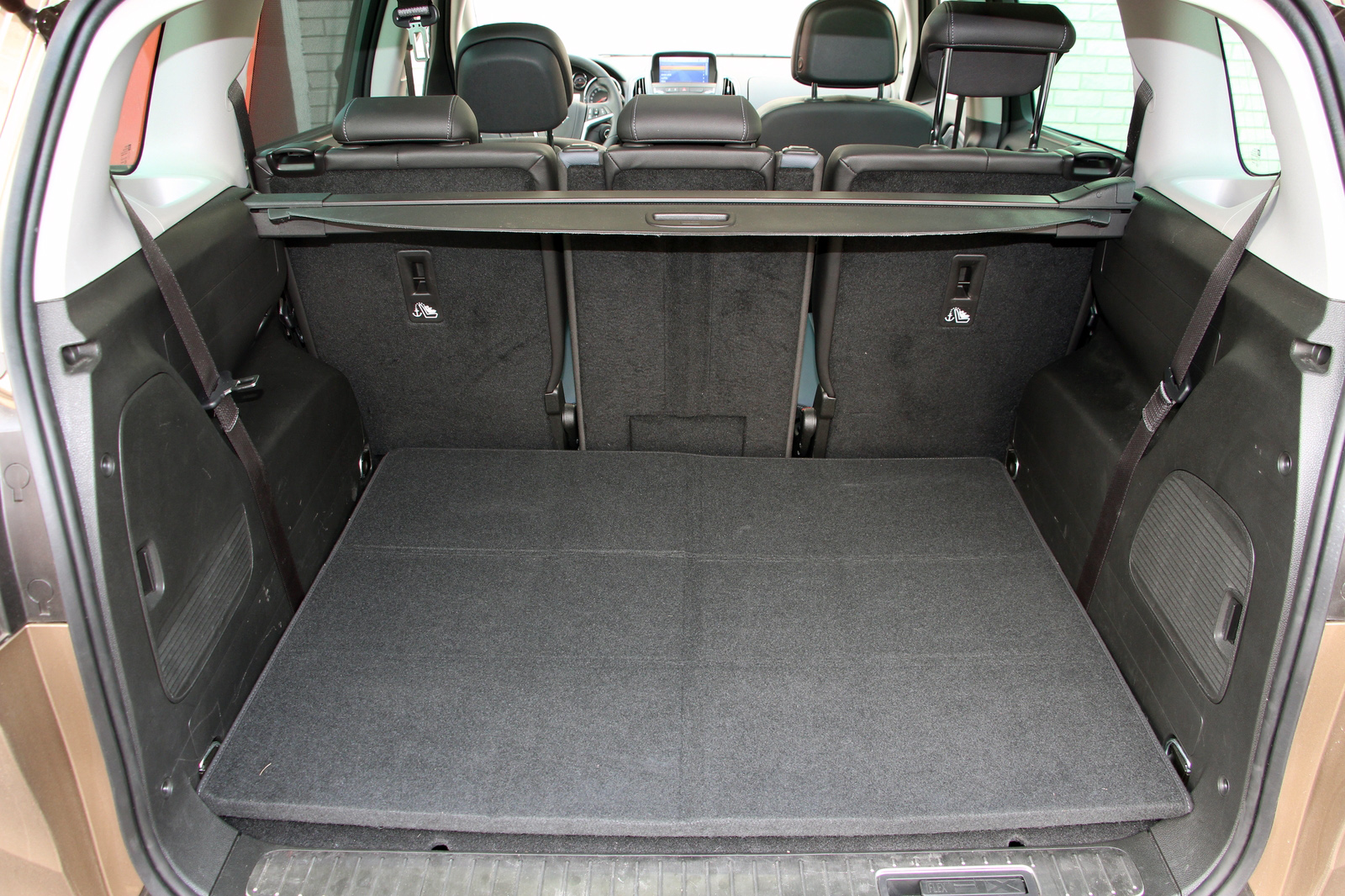 Bár a külső méretek már nem kompakt egyterűsek (hanem nagyobbak), hétülésesként nem profibb a Zafira Tourer, mint azon szegmens jobb képviselői. A hatodik-hetedik ülőhely székméretben nem rossz, ám azok nagyon a padlóra szereltek, a fejtér pedig így is csak 175 cm-es magasságig jó. Ezzel persze bőven megfelel az általános igényeknek. A hét ülés mögött maradó 152 literes csomagtér viszont kicsi, s a kalaptartó csomagtérroló utastéri elhelyezése sem megoldott. Ha viszont épp csak kétülésesként használnánk a Tourert, óriási, több mint 1,85 méter hosszú, 1860 literes teret kapunk. Kerékpárt nem csak a hatalmas bővített csomagtérben, a 214 000 forintos, hátsó lökhárítóból előhúzható FlexFix bringaszállítóval is vihetünk, egy adapterrel nem csupán kettőt, hanem négyet is.