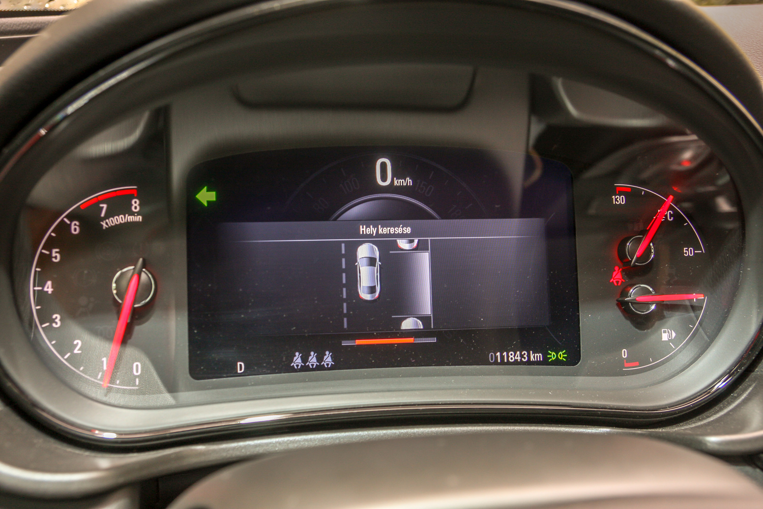A parkolóasszisztens csak helyet keres és tanácsokat osztogat. Ahogy a katalógusban írják róla: Fejlett parkolássegítő. Ez a rendszer nem csak megtalálja az Insigniának megfelelő méretű parkolóhelyet, hanem a grafikus megjelenítés és a hangjelzések segítségével azt is jelzi Önnek, meddig kel hátra- vagy előregurulnia, és milyen mértékben fordítsa el a kormánykereket. Önnek csak a gázpedált kell nyomni, egyesbe vagy hátramenetbe kapcsolni és kormányozni. Ehhez nem fűznék több kommentárt. Az viszont mókás, ahogy abban a kis ablakban is tudja mutatni a térképet