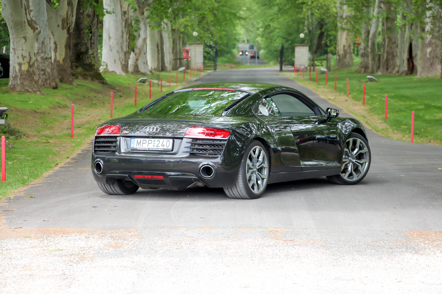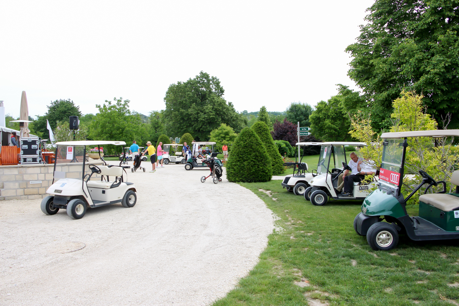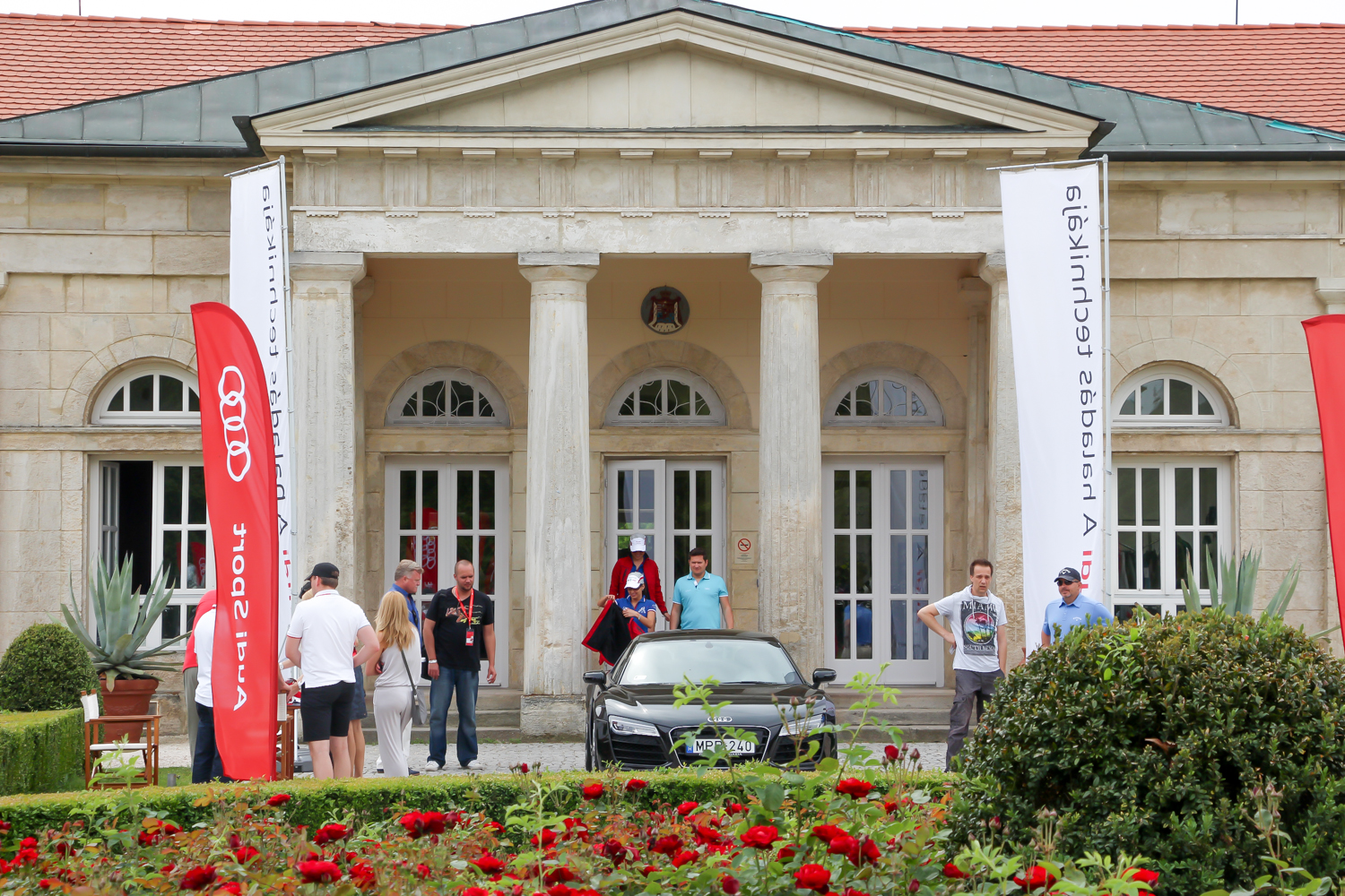 Személy szerint én nagyon szeretem az Alcsútdobozt Etyekkel összekötő 8106-os utat, ezért ebből az irányból közelítettem meg az Audi quattro Golf Kupa helyszínét, ahova az Audi RS modelljeit hívtak kipróbálni. A gyönyörű park felhajtóján elhelyezett Only golf cars felirat sem rettentett meg, mert tudtam, hogy a 8 colos kerekű kis villanyautók mellett ma rendes benzinesek is lesznek itt. A rózsabokrok mögött Volkswagen Golf egyáltalán nem volt, a lapos fekete R8-as is csak alig látszott. Hogy ezt is lehet majd vezetni? Hűha, na ez már egy kicsit megrettentett. Autósújságírói praktika az ilyen menetpróbáknál a fokozatosság elve, eszerint haladva egy TT RS Plus Roadsterben kezdtem a vezetést.