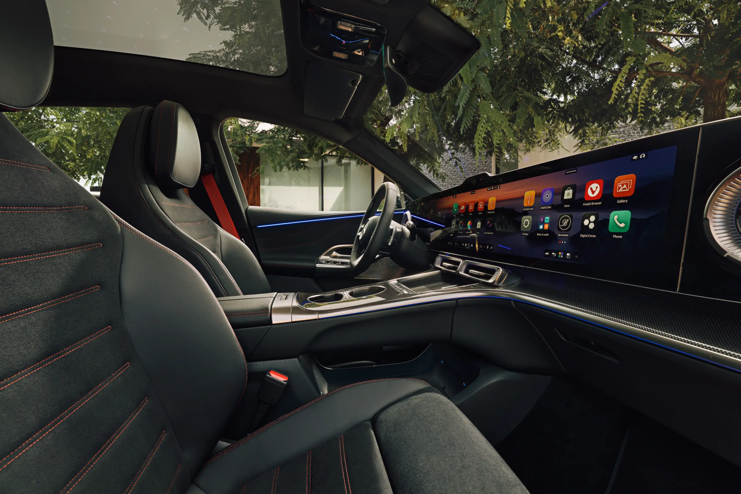 Még az utastérben maradva fontos megemlíteni a továbbfejlesztett MBUX rendszert is. Ez már a negyedik generáció, amely egyszerre használja a Microsoft és a Google AI-megoldásait. Mindig az adott feladathoz legjobb forrásból dolgozik, és akár egyetlen beszélgetésen belül is többször vált. A virtuális asszisztens hangalapú és kontextusérzékeny, tanul a vezető szokásaiból, grafikai karakterekkel jelenik meg, beleértve a humanoid-csillagfelhős és a „LittleBenz” nevű, kifejező arcú avatárt is. És igen, még mindig tud vicceket mesélni!