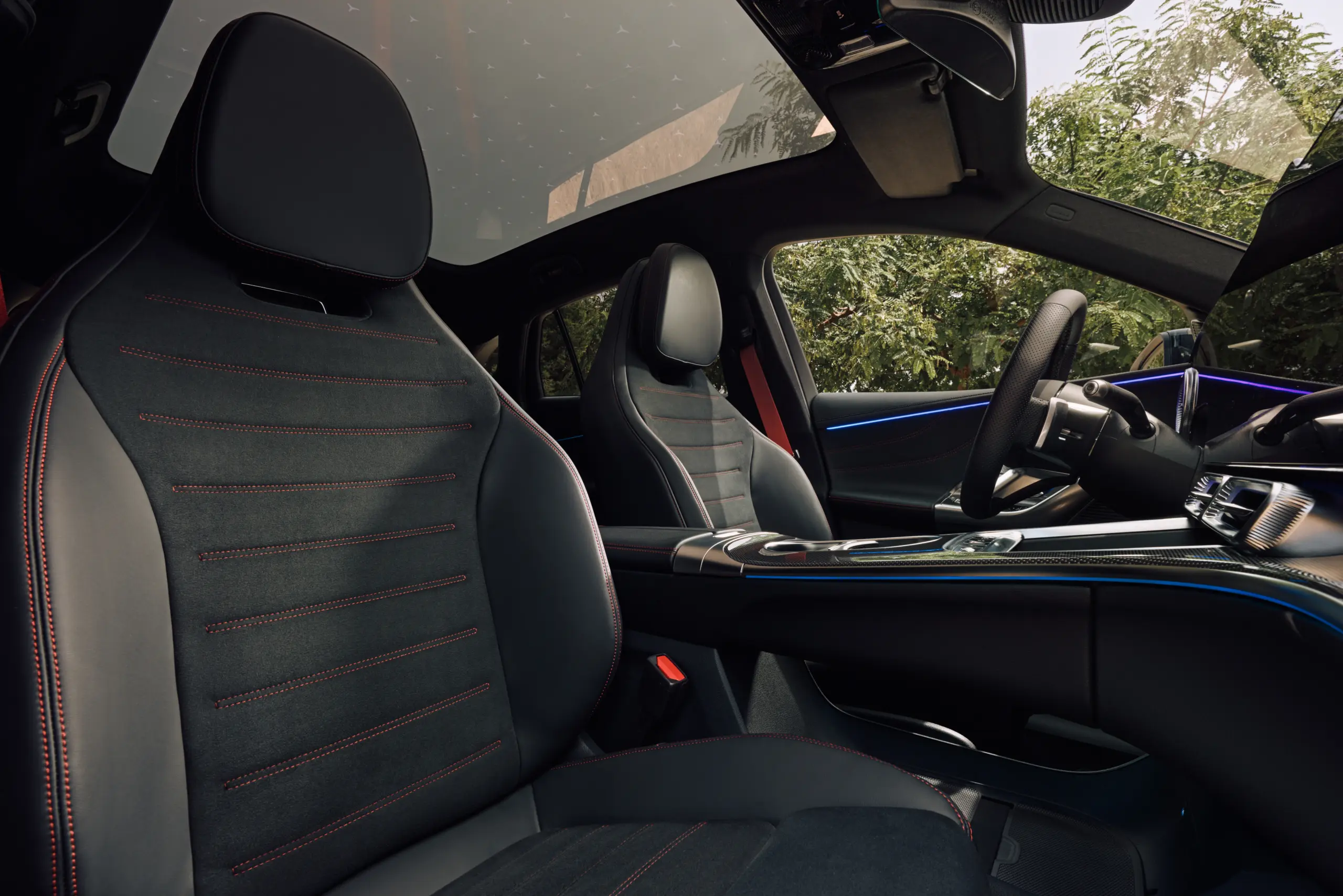 Feszengeni sem, mert nagyon kényelmes az új GLC. A belső égésű motoros változathoz képest 84 mm-rel hosszabb a tengelytávolsága így az utasok 13 mm-rel nagyobb lábteret és 46 mm-rel nagyobb fejteret kapnak elöl, míg hátul 47 mm-rel nagyobb a lábtér és 17 mm-rel nagyobb a fejtér. A csomagtartó 570 literes, és a hátsó ülések lehajtásával ez 1740 literre bővíthető, frunk pedig 128 literes.