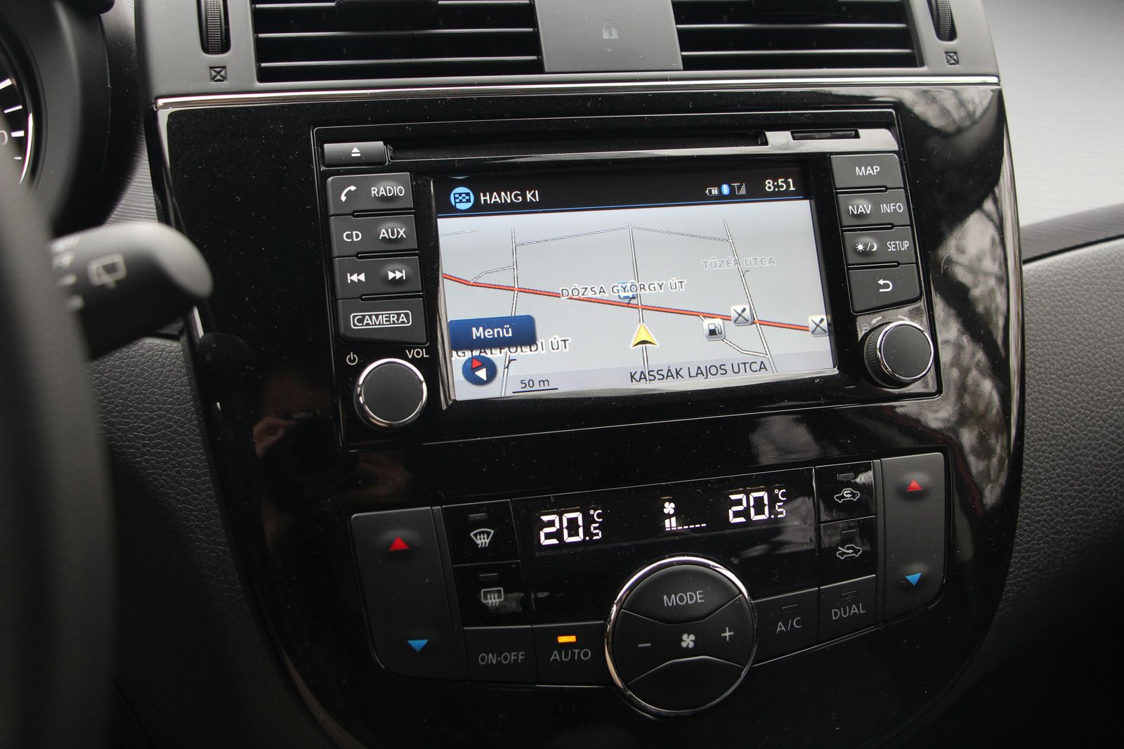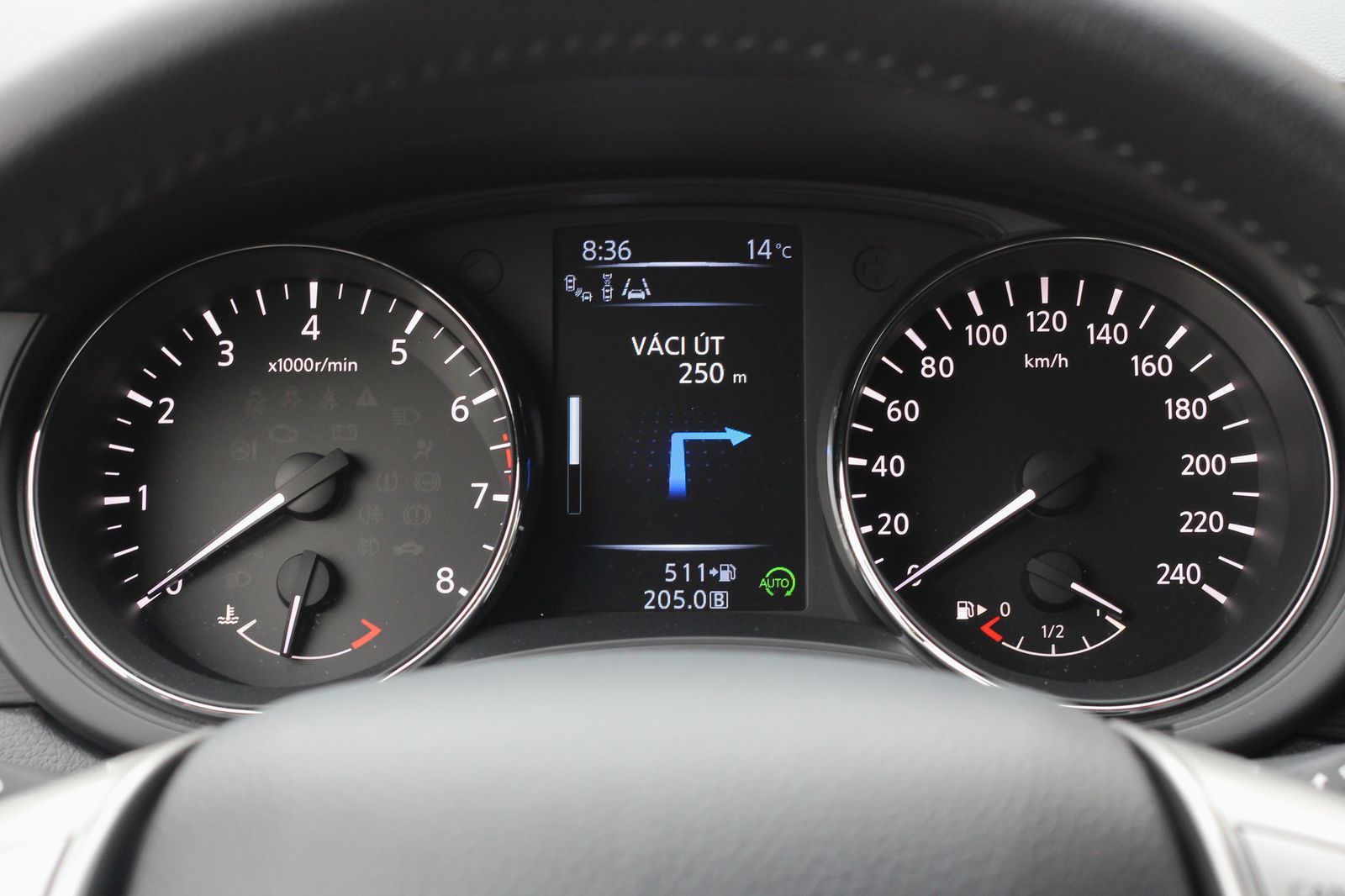 A navigáció nemcsak a középkonzoli, akár tolató- illetve, előre és oldalra, vagy akár a padkát is látó kamerát is megjelenítő érintőképernyőn, hanem a műszerek között is jöhet, ugyanott a stop-start által megspórolt CO2 is látható