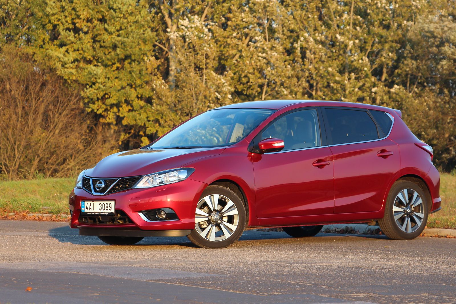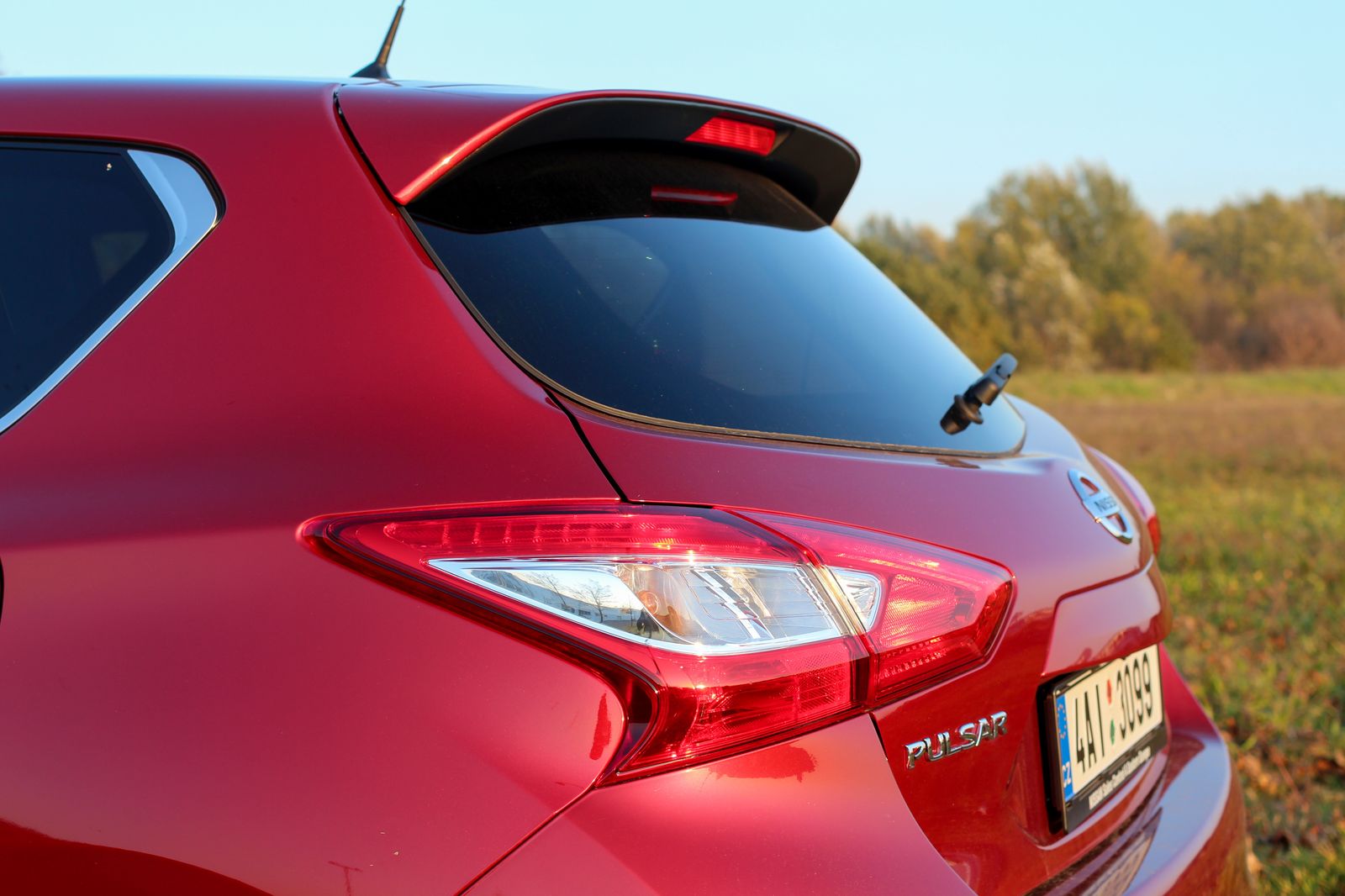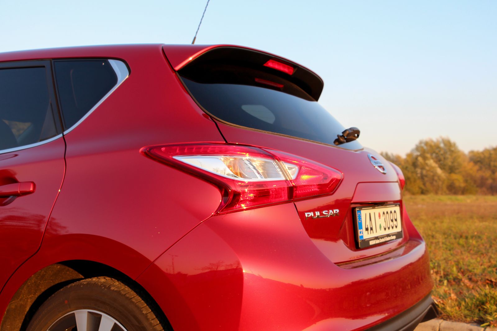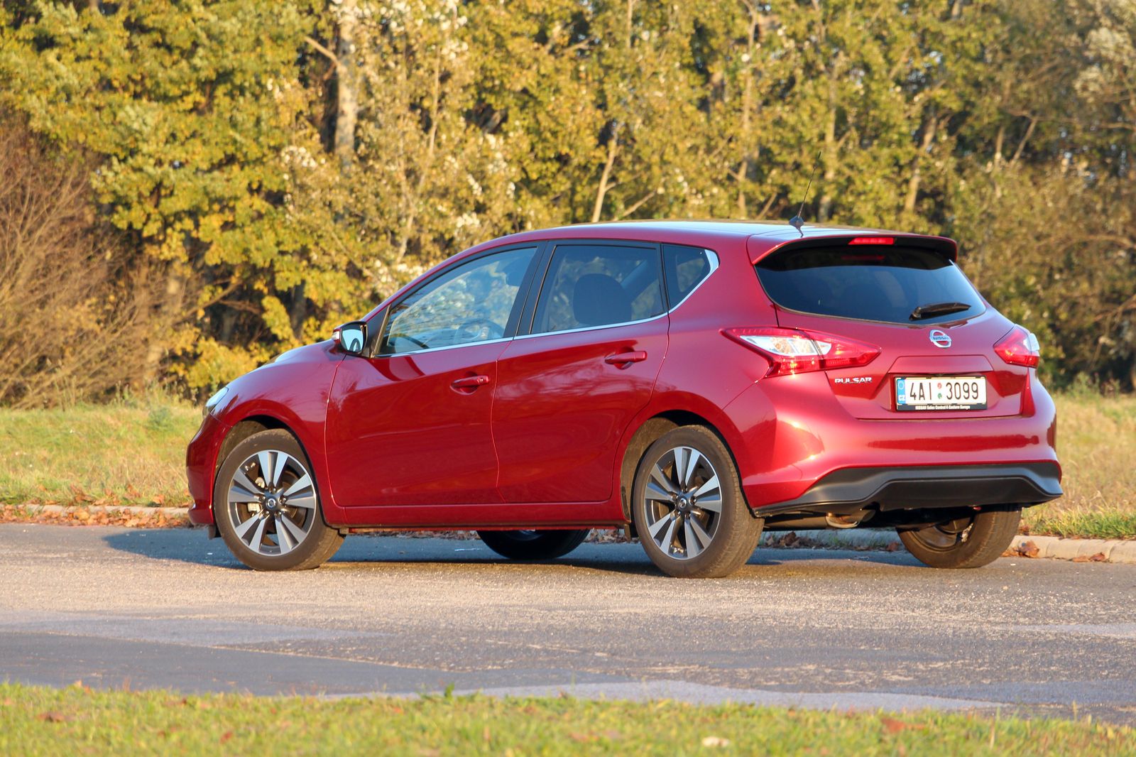 Jól áll a Pulsarnak (is) a bordó árnyalat. A fronttól eltekintve Lexus Ct, Kia cee’d és talán számos egyéb kompakt formája is belelátható a nyilván teljesen szubjektív megítélésű, szerintem összességében teljesen korrekt formába
