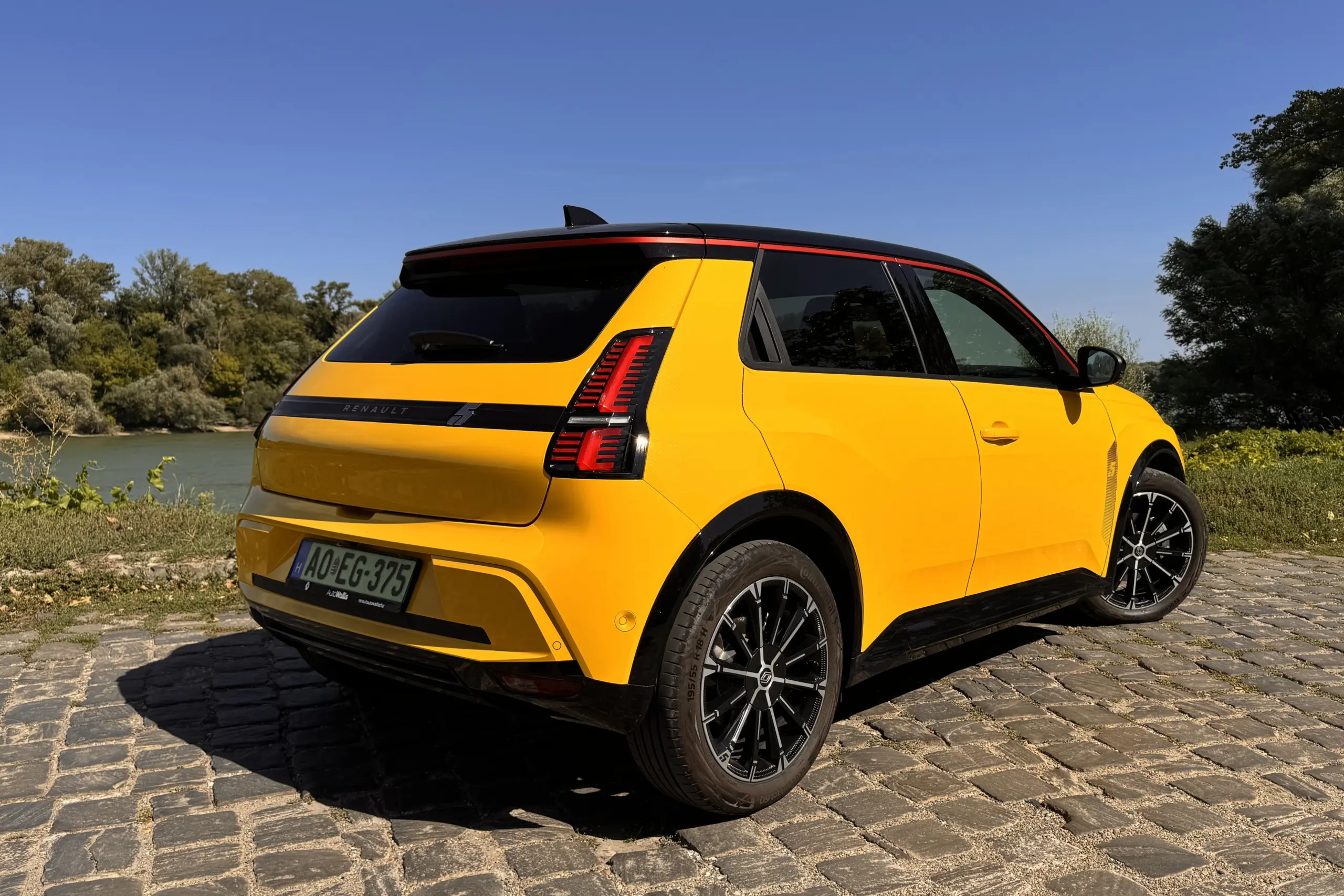 Gyakorlat teszi a mestert, de ne mindegy, hogy mennyi idő alatt válik igazán mesterré. A Renault-nál ez aránylag hamar ment. Jól sikerült már az elektromos Mégane is, de aztán picit megijesztett a Scenic, hogy felfelé építkezik majd ez a márka is. Szerencsére gyorsan kapcsoltak és alkottak egy majdnem tökéletes villanyhajtású kisautót. Mert hát az új 5-ös sem tökéletes, hála égnek, mert ha valaki megcsinálná a tökéletes autót, akkor onnantól kezdve mindenki azt csinálná és csak egy autó létezne világon. Na, de kezdjük az elején. Az 5-ös tényleg kisautó, de a szónak a pozitív értelmében. Ahogy a korszakalkotó elődje is kicsi alapterületen nyújtott elegendő utasteret, úgy az új is nagyon hasonló. Nem éri el a négy métert (3,92 m) a kasztni hossza, a tengelytávolsága is „csak 2,54 méter. Nem nőtt magasabbra 2,5 méternél a szélessége pedig 1,77 méter. Bent mégis bőven van elég hely az első sorban, és igazából hátul sem kínzás felnőttként utazni, de a gyerekeknek aztán végképp elegendő a lábtér és a fejtér is. A csomagtér mérete 326 liter, ami egy kisautótól jó érték, ám sajnos a töltőkábelnek nincs külön rekesze. Szóval a lényeg,  hogy ekkora tér mindenképp elegendő, hiszen egy villany kisautó nem a nagy utazásokra termett. Ez a hatótávból is kiderül, ám mielőtt arra rátérnék egy kicsit örvendezek még. Örvendezek, mert rég találkoztam ennyire vidám masinával. Ezt a vidám hangulatot már eleve az „örömteli arca megalapozza ,de egy óriási easter egg gyűjtemény az autó a magasabb felszereltséggel. Minden oldalán találni valami utalást a méltán népszerű elődjére, illetve büszke a franciaságára is. Erre utalnak a gall kakas motívumok és a francia trikolór is. Aztán oldalról nézve is hozza a sziluett a klasszikus formát ,akad itt 5-ös matrica és a 18 colos felniken is ott az 5-ös szám. Aztán a tetőre is kérhető ilyen motívum, hátul pedig ugyancsak ott van ráadásul a hátsó lámpák kialakítása az egykori Turbo modellt idézi. És ezt még lehet tetézni, hiszen bent folytatódik a geg cunami. Úgy tud bent is játékos maradni az autó, hogy nem romlik az ergonómia. Talán az egyetlen túlzás, hogy az egyébként nagyon jól kézre álló kormánykerék mögött, a jobb oldalon három bajuszkapcsoló is van. Legfelül az irányváltó, középen az ablaktörlő, alul pedig Renault-szokás szerint a hangrendszer „kezelőpultja. Itt akaratlanul is beleakadhat a kezünk olyan bajuszkapcsolóba, amihez nem is akartunk hozzányúlni. Mindenhol máshol viszont példás a kialakítás. Akadnak fizikai gombok, de a Google alapú infotainment is könnyen, mondhatni intuitívan kezelhető a 10,1 colos érintőképernyőn. Szintén említést érdemel a 10,3 colos digitális műszeregység, ami csodaszép grafikával mutatja a fontos adatokat a vezetőnek.   A színes burkolatok, a kellemes tapintású anyagok (műanyag, műbőr és szövet egyaránt), a világító feliratok mind-mind hozzájárulnak ahhoz a vidám hangulathoz, amit az Ötös áraszt magából. A rendkívül kényelmes üléseken is az annak idején a Turbóban látott mintázat köszön vissza a kárpitokon, de még a tető négyzethálós kárpitozása is ugyanonnan ismerős. Egyszerűen minden porcikája ad valamit a felhasználónak. Mindig öröm ránézni és beszállni, de ami még fontosabb, hogy vezetni is jó. Végre egy villanyautó, amiben van élet! Mindig szkepticizmussal fogadom azokat az élménybeszámolókat, amik arról szólnak mekkorát autózott valaki egy elektromos autóval. Hogy miért vagyok hitetlen? Nos, nicns mögötte nagy matek. Az élményautózásnak mindig is gátat szab a tömeg, és ez addig így is marad, amíg ebben az univerzumban maradunk az itt adott fizikai törvényszerűségekkel. Tökmindegy, hogy a padlólemezt beterítő akkumulátorral alacsonyan lesz a tömegközéppont, ez önmagában még nem elegendő. A Renault 5-ben még alacsonyabban van, mint a villany-SUV-okban, magyarán közelebb a talajhoz, emellé pedig az üres tömege 1450 kilogramm a nagyobb aksival, ami villanyautóknál könnyűnek mondható. Ez a nagyobb akkumulátor 52 kWh kapacitású, ami papíron 410 km hatótávra elég, de nálam pl. 438 km-ert mutatott teljesen feltöltve. Ám ez leginkább városi használat esetén közelíthető meg. Ha már autópályázunk is vele, akkor jobb, ha 300 kilométer körüli hatótávolsággal számolunk. Továbbra se feledjétek, hogy egy kisautóról beszélünk, szóval úgy vélem nem is igazán szükséges nagyobb hatótáv. Aki ennél többet akar egyhuzamban autózni, már lehet jobban jár egy hibriddel, vagy PHEV-vel. Aki pedig szeret élményautózni, kanyarogni a hegyek között, mindenképp kedvelni fogja az R5-öt. A 150 lóerő és a 245 Nm forgatónyomaték elég arra, hogy sportosan viselkedjen az autó. Százas gyorsulása 8 másodperc, de a rugalmassága sokkal fontosabb, és hát a nyomaték itt is azonnal érkezik. Ennél már csak az enne a jobb, ha a hátsó kerekekre érkezne, de fronthajtással is élvezetes. A kormány pontos, nem túl döglött, így pontosan oda teheted a kanyarcsúcspontokra. A tapadásban társad les za hátul többlengőkaros független felfüggesztés is, szóval kíváncsi leszek mit tud még ehhez hozzáadni az Alpine néven érkező sportváltozat. Mert már most nagyon egyben van a csomag. Vegyes fogyasztása a gyáriak szerint 14,9 kWh/100 km, amit nálam meg is tudott közelíteni. a tesztfogyasztás 15,7 kWh/100 lett. Fontos megemlíteni még, vezetősegédek jól működnek, nem bizonytalanok és nem is tolakodóan szigorúak. A tesztautó magas felszereltségében akad is belőlük bőven, nem túl elszaladó árak mellett. A nagyobb akkumulátorral már 12 899 000 forintért vihető az új Renault 5 E-ECH ELECTRIC, amiből még lejöhet a 3,6 milliós 