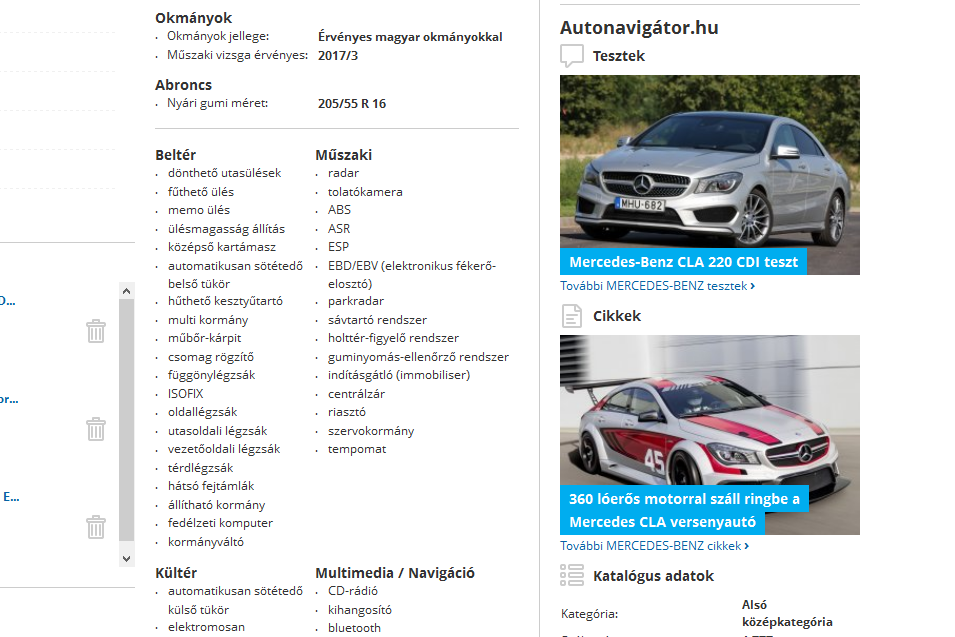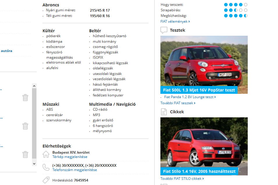 A hirdetési adatlapokon a telefonszámok immár csak kattintásra láthatók, az extrák és a jellemzők táblázatosan, pontokban sorakoznak, az Autónavigátor.hu Használói Véleményeiből adódó értékelések és a modellekhez kapcsolódó cikkek is szerepelnek