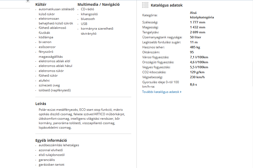 Tényleg sokkal jobban áttekinthető most az oldal. Jó, hogy az extrákat csoportosították és felsorolásszerűen könnyebb megkeresni, amit szeretne az ember. Korábban mindig bogarásznom kellett, hogy van-e GPS az adott kocsiban, most meg hamar megtalálom.