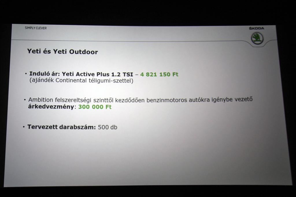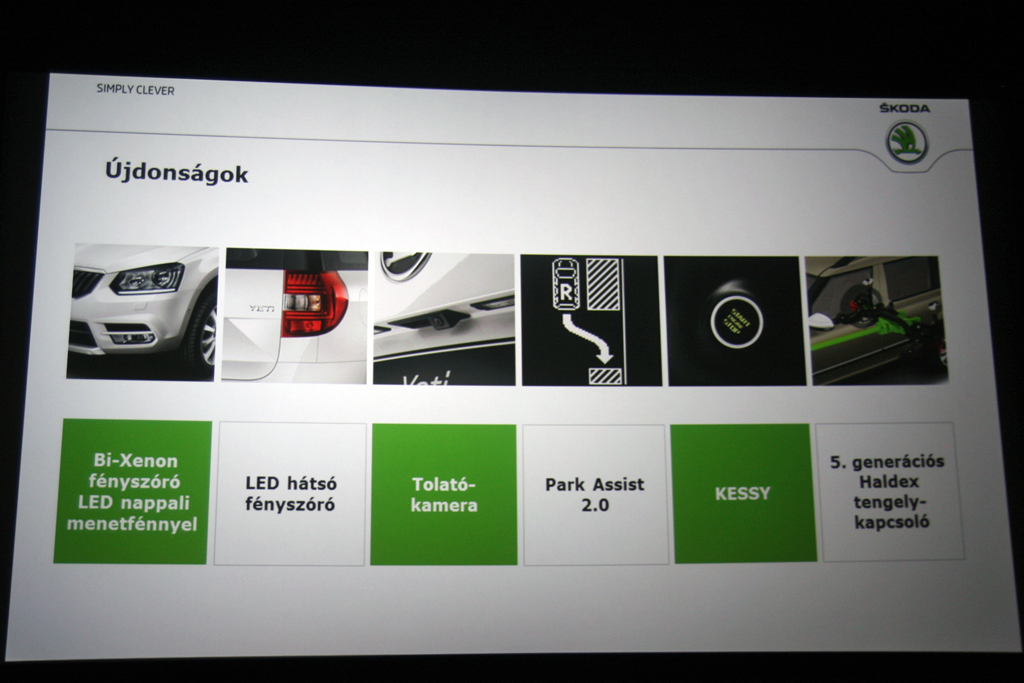 A szalonokat januárban ellepő friss Yeti kockaságát a kerek lámpák elhagyása erősíti – nem rossz ez a szögletesség, csak a hegyről 2009-ben lemerészkedő előd ábrázata kedvesebb volt. Persze nem rendőrszínekben, de tény, hogy a magyar zsaruflotta egyrészt szépen megdobta az eladási számokat, másrészt egyesek állítólag azért döntöttek Yeti-vásárlás mellett, mert megtetszett nekik a rend éber őreinek kocsija… Mint az a sajtótájékoztatón elhangzott, idén (novemberig) 720 Yeti talált magyar gazdára, míg 2010-től 2012-ig évi kb. 300 darab.