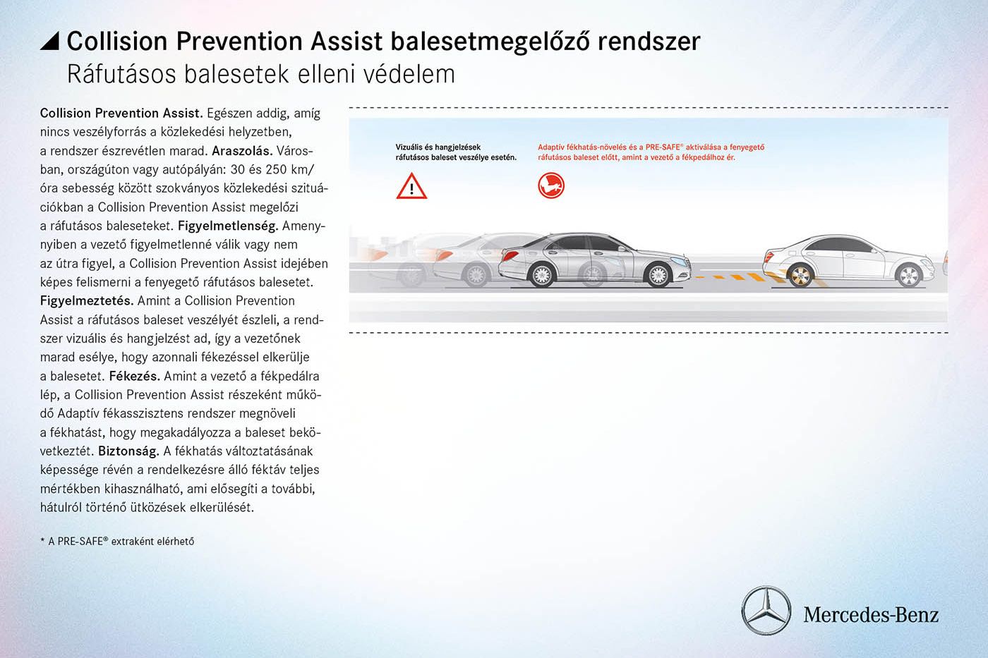 - PRE-SAFE fékrendszer autonóm részleges fékezéssel (2006-tól), illetve autonóm teljes fékezéssel (2009-től), opcionális extraként
