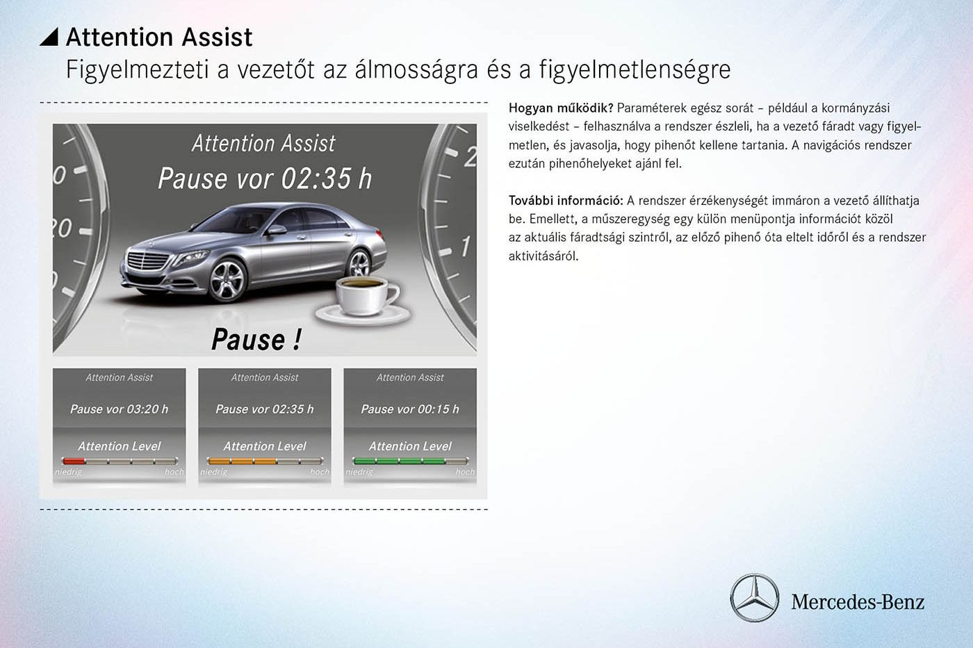 - ATTENTION ASSIST fáradtságfigyelő rendszer