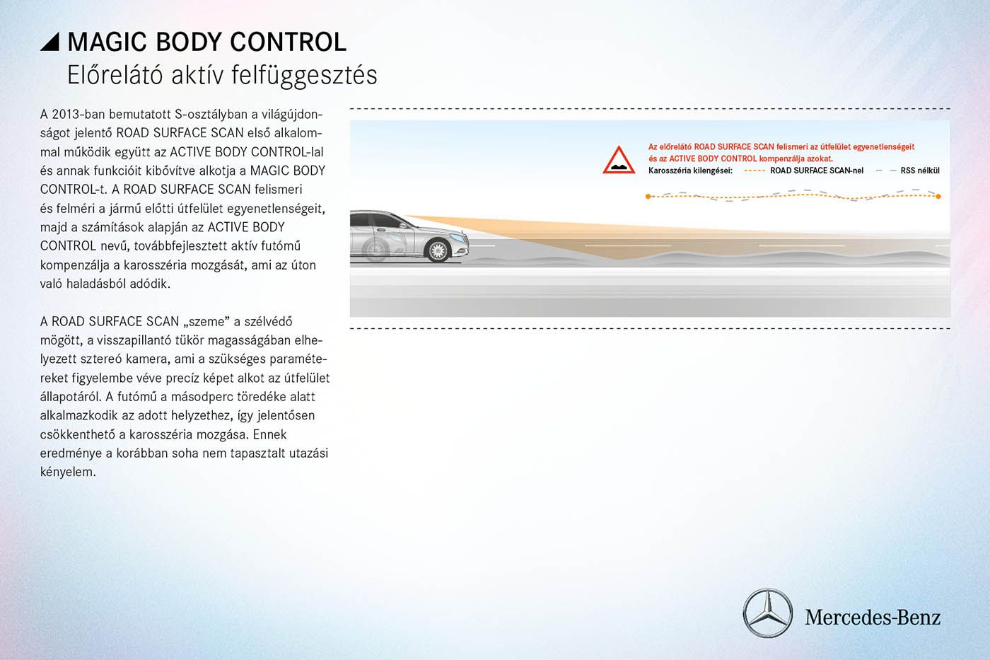 - Active Body Control aktív futómű oldalszél-stabilizáló funkcióval opcionális extraként (szériafelszerelés az S 600 modellben)