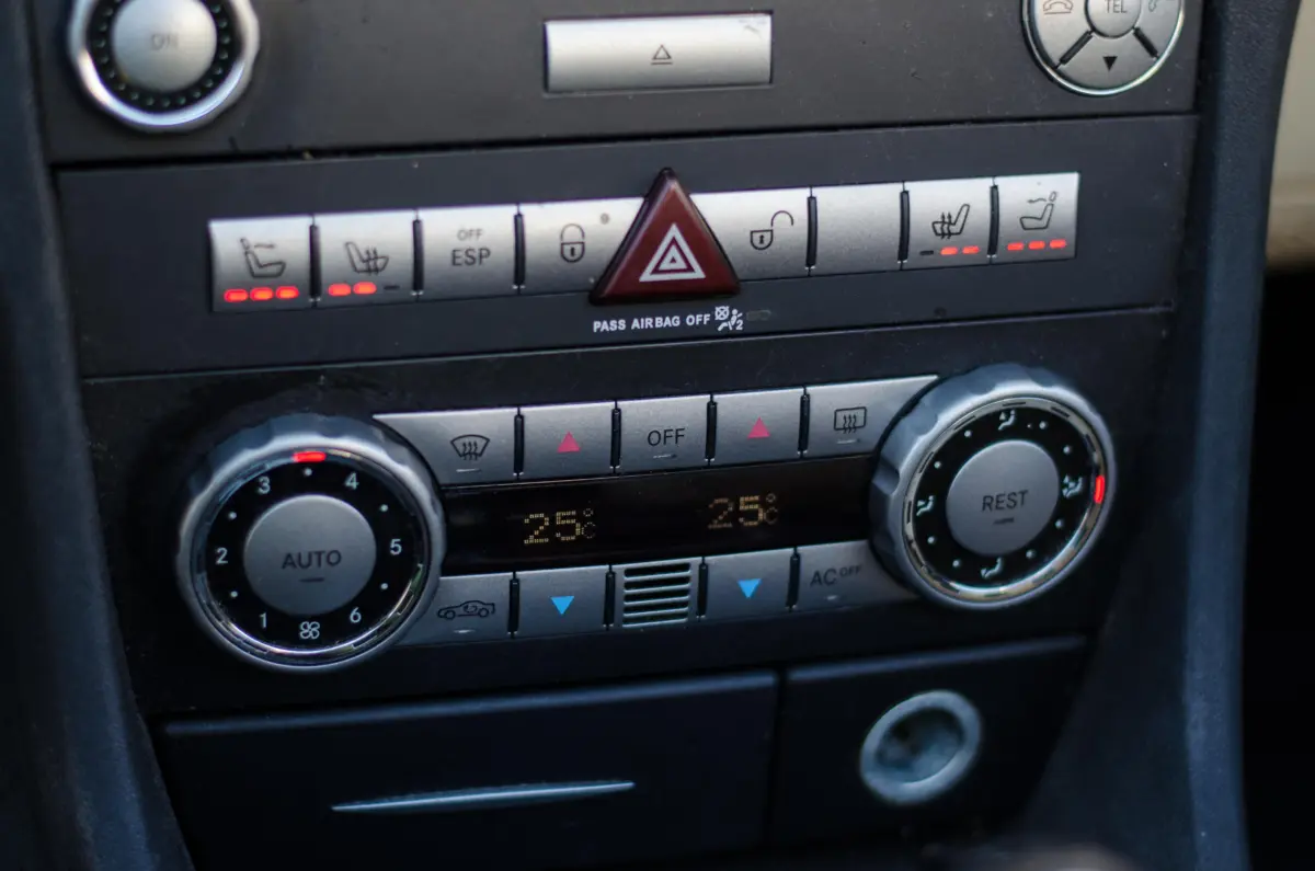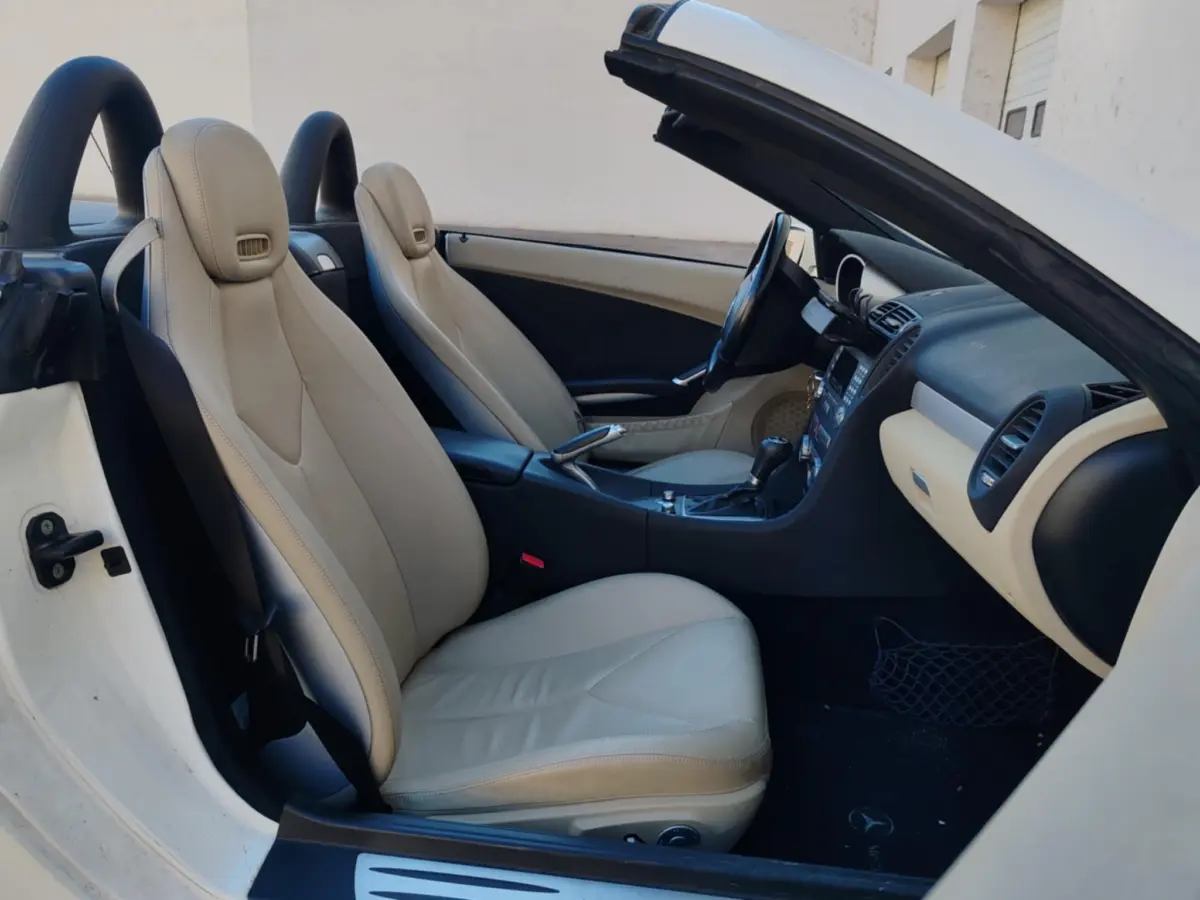 Összességében tehát nem egy „játszósautóként, hanem sokkal inkább egy státusszimbólumként, egy prémiumtermékként érdemes gondolni az SLK-ra ezzel az erőforrással, ami még messzebb áll a magyar valóságtól. Ez a konkrét autó azonban nem is Európába, hanem az amerikai piacra készült és ott is helyezték először forgalomba. Az Egyesült Államokból 2020 elején érkezett Magyarországra, ahol egy jómódú család negyedik autójaként elsősorban a jelenlegi tulajdonos édesanyja használta a napi szintű feladatai ellátására, majd lepasszolta az autót a fiának, aki azóta szintén hétköznapi közlekedésre használja, ezzel jár be az egyetemi óráira is.