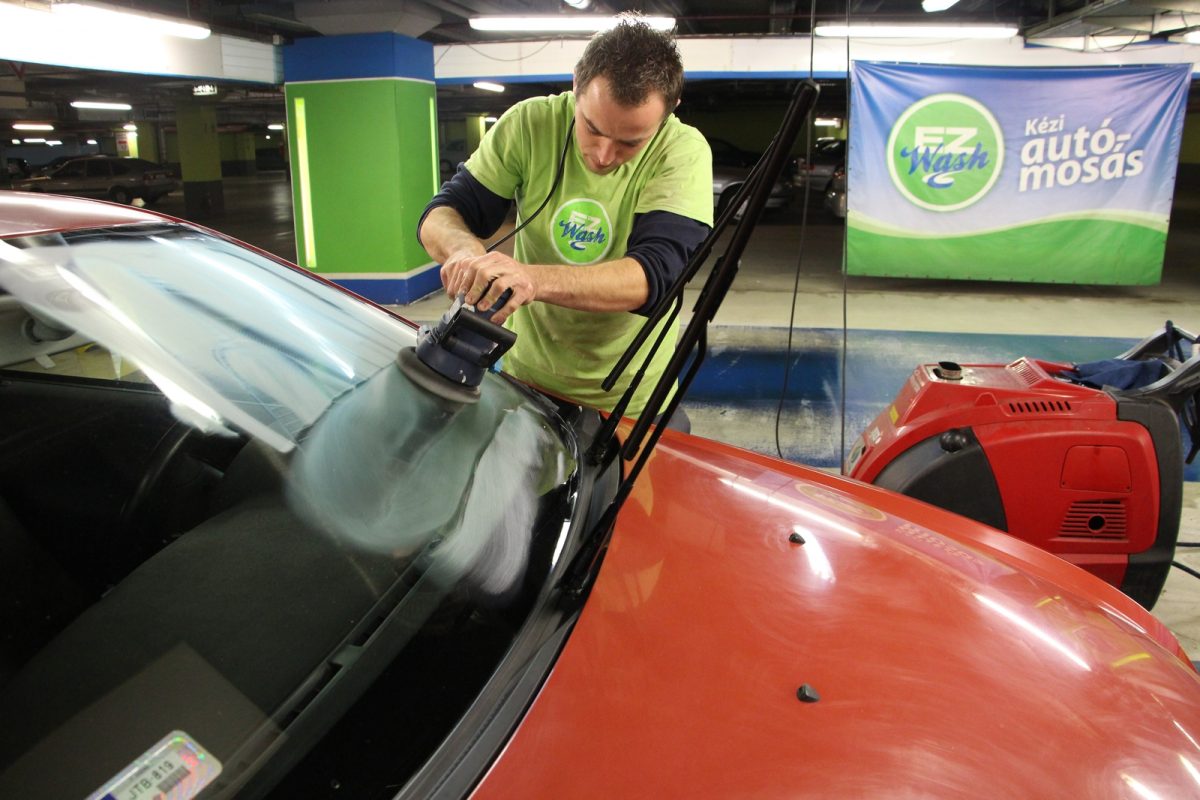 Mi lehet a megoldás? – morfondíroztam sokáig, mígnem beugrott, hogy a korábban már huzamosan is vallatott, s még átlagos futás felett is egy évet bőven bíró nanotechnológiás szélvédőbevonat sanszosan segíthet a problémán. Fel is hívtam mosópartnerünk, az Easy Wash Systems Lurdy Ház ügyvezetőjét, hogy helyes-e a meglátásom, szerinte is segíthet-e a bevonat a karcokon, javíthat-e az a kilátáson. Nem volt egyértelmű az öröm a kihívás kapcsán, s rögtön megtudtam, hogy hiába polírozzák finoman ők is a szélvédőt a vízlepergető bevonat felhordása előtt, a fénytörést okozó karcokat az biztosan nem fogja eltüntetni. A kezelést ennek ellenére meg lehet próbálni, ugyanis a bevonat egyrészt homogénné teszi az üveg felületét, másrészt vízlepergető hatású, s így hiába maradnak meg a karcok, azok már jóval kevésbé fognak fénytörést okozni. Ami pedig biztos: az ablaktörlővel és sokszor már mosó által is lehozhatatlan, jellemzően olajos, akár természetes eredetű, fénytörést bőven okozó szennyeződéseket is le fogja vinni a polír.