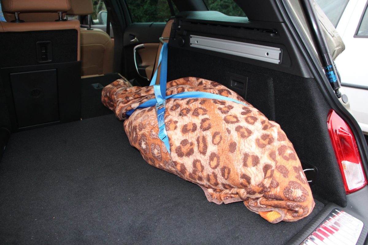A fát akkor is ajánlatos lepedőbe/plédbe csomagolni, ha azt nem az utastérben, hanem az autón szállítjuk. A fenyő gyantája ugyanis a lemezekről is a létező legnehezebben, szinte sehogy sem lemosható. Amennyiben az utastérbe tesszük a fát, ott különösen ajánlott a teljes bugyolálás. A legegyszerűbb az, ha első lépésben szépen kiterítjük a raktérben a csomagoláshoz szánt plédet, majd arra rakjuk a fát, s amint betettük azt, körbe is bugyoláljuk vele. Nem csak csomagolni, rögzíteni is kell – leginkább erős hevederrel, hogy komolyabb fékezésnél a fa ne szaladjon előre.