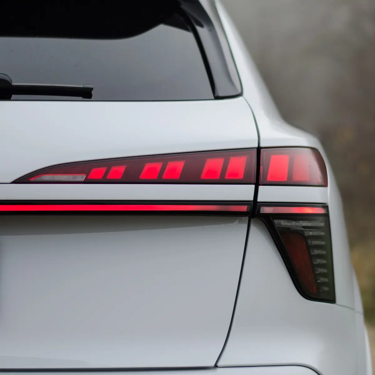 Hátul is LED szegmensekből áll a lámpatest, amelyet az autó teljes szélességén végig nyúló fénycsík egészít ki
