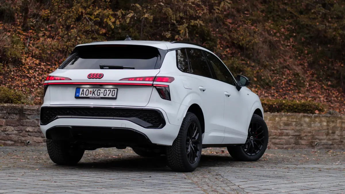 Maga a vezetési élmény is nagyon pozitív meglepetésként hatott. Az autót főként a hazai országutakon próbáltuk ki, és egyáltalán nem érződött, hogy egy kisebb platformos, ráadásul alacsonyan extrázott népautóban ülünk. A ballonosabb gumikor a Q3 kellemesen kimozogta a kátyúkat, miközben nagyobb sebességnél is stabil tudott maradni. Mindezt kényelmes, jól tartó, minden téren állítható, memóriás ülésekkel és minimális menetzajjal párosítva. A kellemes beszélgetés közepette, ha nem kellett volna kimondottan figyelnem arra, hogy milyen az autó, akkor észre sem vettem volna, hogy vezetek. Ez pedig a városi dugóban és a több ezer kilométeres utazások során is fontos szempont lehet.