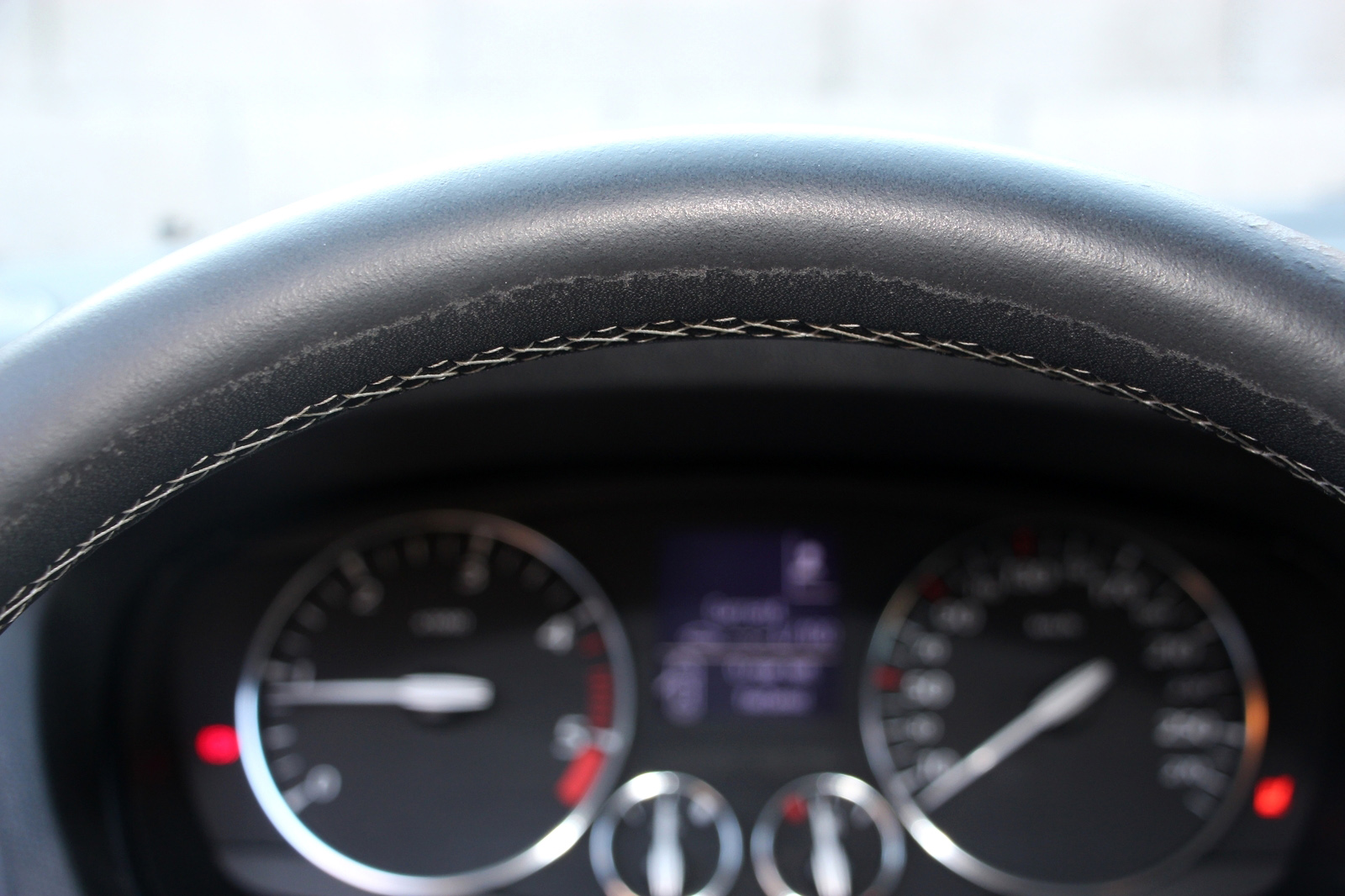 Kopás a vágott aljú kormánykerék bőrhuzatán is látható: pont annyi, amennyi 170 ezer kilométerrel reális, egyetlen kivétellel más beltéri elem kopása nem említhető, az ülések bőrhuzata is egészen jó állapotú. Azok széle azonban nem bőr, hanem műbőr, s az a sofőr oldalán (jellemző típushibaként) ki is van töredezve. Ez persze javítható, de ki kell szerelni hozzá az ülést, el kell vinni a kárpitoshoz, s nagyjából egy tankolásnyi (~20 000 Ft) pénzt ott kell hagyni. Olcsóbb lesz majd a kormánykerék újrabőrözése, hamarosan arra is sor fog kerülni. Mással szerencsére nem kell egyelőre foglalkozni.