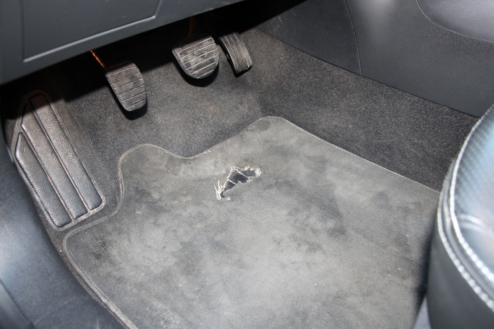 Nem kérdéses a magas, valós futás, a gépházban és a sofőr ajtajánál is cetli mutatja, hogy májusban 152 000 kilométer volt az autóban. Vélhetően legtöbbet autópályán futott, nem a kuplung-, hanem a fékpedálnál van kikopva a gyári (kivehető) szőnyeg