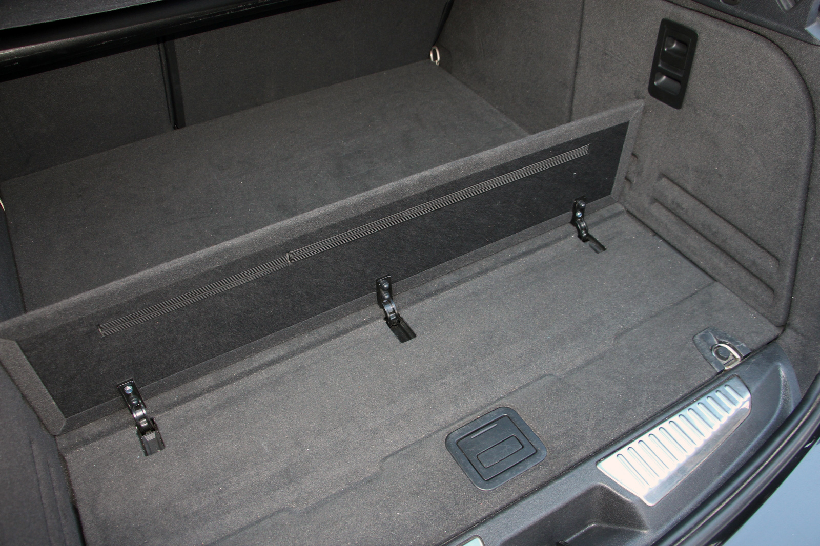 Nagy, küszöbmentesen, teljes szélességű nyíláson keresztül pakolható, felhajtható fallal szeparálható, meg természetesen rögzítőszemeket és még gyári kutyahálót is adó a csomagtér