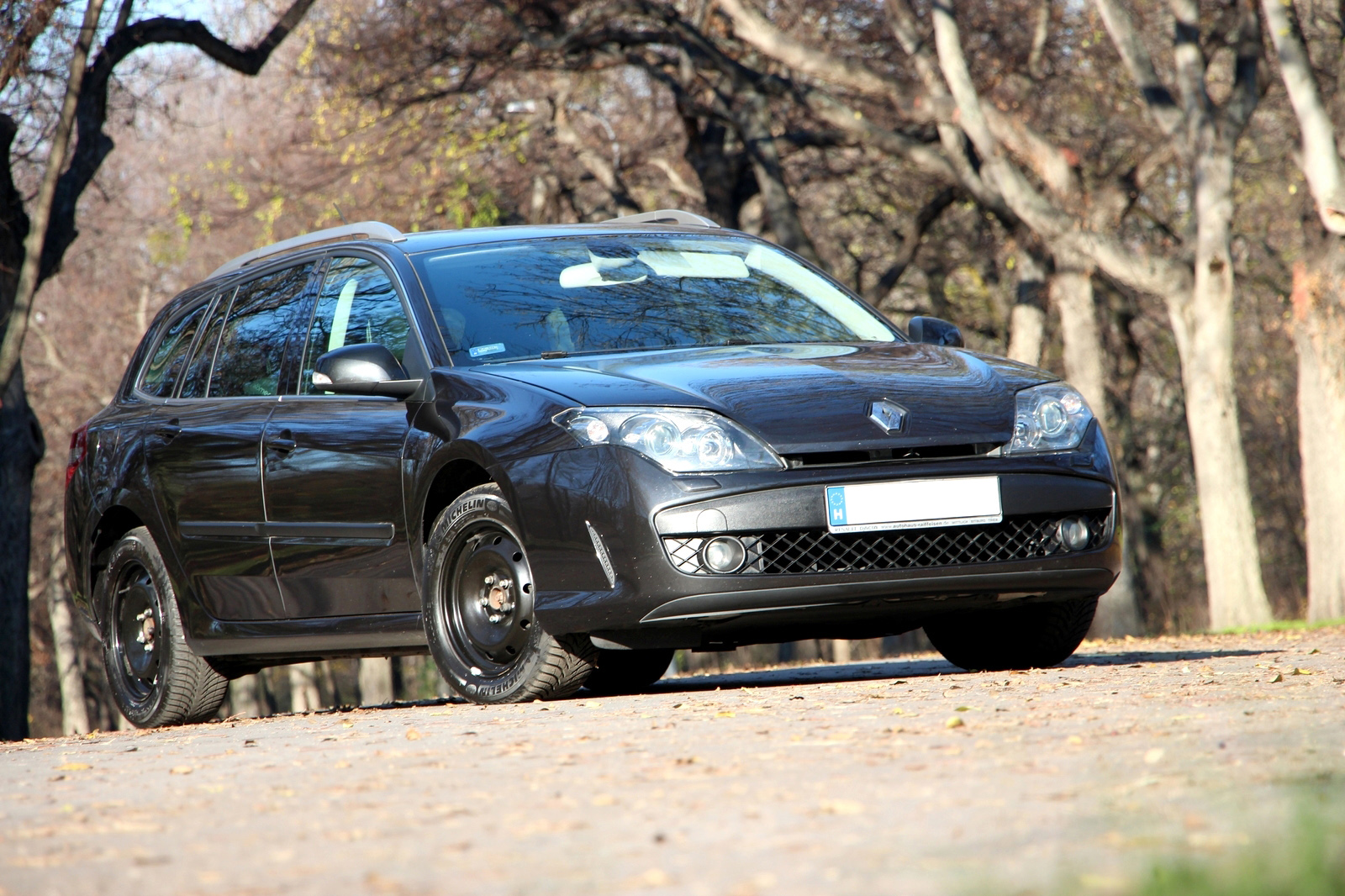 Hogy a 6900 euróért hirdetett, némi alkuval 6600 euróért elhozott 2010-es Laguna jó vétel volt, az nem kérdés, ugyanis annak köszönhetően, hogy már Euro 5-ös motoros, egészen szerény regisztrációs adóval honosodhatott, s így férhetett 2,2 millió forint alá a teljes bekerülési költsége. A választás tudatos volt. Cimboránk csakis Euro 5-ös és amúgy igen jól felszerelt autót keresett. Elvárás volt a gyári navigáció, ami a Lagunában TomTom rendszerű, magyar nyelvet is tudó, teljesen jól használható. A GT felszereltség pedig szinte minden egyéb fontosat megad: automatikusan nyitó-záró Renault-kártya, bőrülések, kétzónás klíma, ESP, külön is nyitható hátsó ablak, természetesen elektromos (mindenhol automata) ablakok, automata behajlásra is képes külső tükrök, fűthető, elektromosan állítható első ülések, hátsó rolók, stb. Hifije ugyan nem Bose, de igencsak minőségi, természetesen távirányítható, MP3-at CD-ről olvasó, de USB-csatlakozó nélküli. A felszereltségek sorolása helyett egyszerűbb a hiányzó tételek említése: nincs xenon fényszóró, napfénytető, illetve 4Control, hátsó kereket is forgató futómű. A felnik ezen az autón 17 colos aluk voltak, még vállalható méretűek (szemben a kényesebb 18-asokkal), télre persze józanul kapott 16 colos – szépnek ugyan nem nevezhető, de praktikus – acélfelniket az autó, és a francia márkához illő, szintén francia, idei téligumi-tesztünkön is győztes Michelin Alpin A4 gumikat.