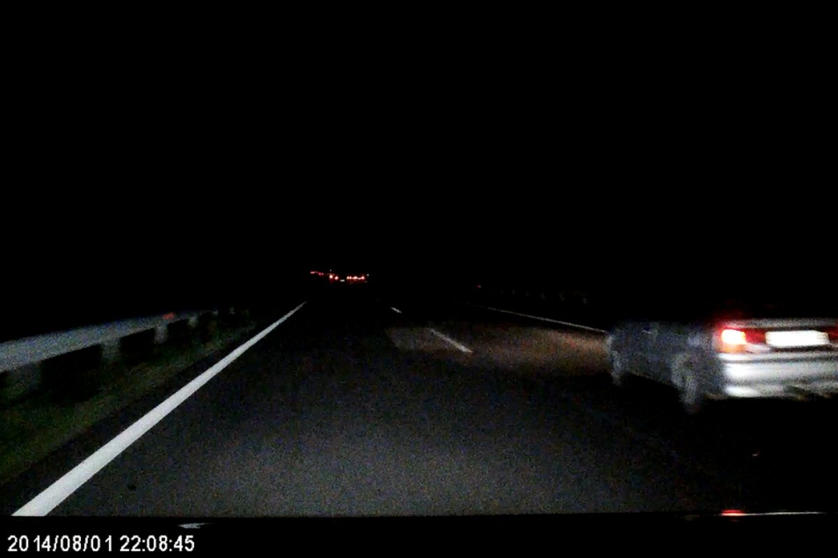 És ez nekem elegendő is volt, s azt gondolom, hogy meggyőzőbb is, mintha csak azt írnám, hogy a FullHD (1920×1080 pixeles) 30 fps-es (azaz másodpercenként 30 képkockát rögzítő felvétel már kellően jó minőségű ahhoz, hogy az autónk közelébe kerülő járgányok rendszámai leolvashatóak legyenek. Ha a kamerát az előírás szerint, a középső visszapillantó alatt rögzítjük, akkor nem is rontja túlzottan a kilátást, s bőven elég kábel van ahhoz, hogy az utasoldali ajtó felé a szélvédőkeret mellett, valamint a szélvédő tetejénél a napellenzőnél elvezessük a tápot. A szivargyújtóból áramot kapva automatikusan indul a felvétel. Ha nincs semmi havária, a felvételek automatikusan készülnek, s a mindenkori legrégebbiek törlődnek. Ha a készülék balesetet észlel 3 tengelyes G-szenzorával, akkor táp nélkül is rögzít 470 mAh-s lítium-polimer akkumulátorával. A rázkódási érzékenység három fokozatban állítható, de talán fontosabb az, hogy a készülék beépített LED-fénnyel is rendelkezik az éjszakai felvételek javításához, meg persze arra néz, amerre a fényszóró világít. Ez mondjuk így sem ad tökéletes éjszakai képet. Míg jó fénynél a rendszámok már viszonylag messziről is elfogadhatóan leolvashatók a felvételen, szürkületben már csak a legközelebbiek láthatók jól, sötétben pedig azok is olvashatatlanul beégnek, az autótípusok persze akkor is jól kivehetőek.