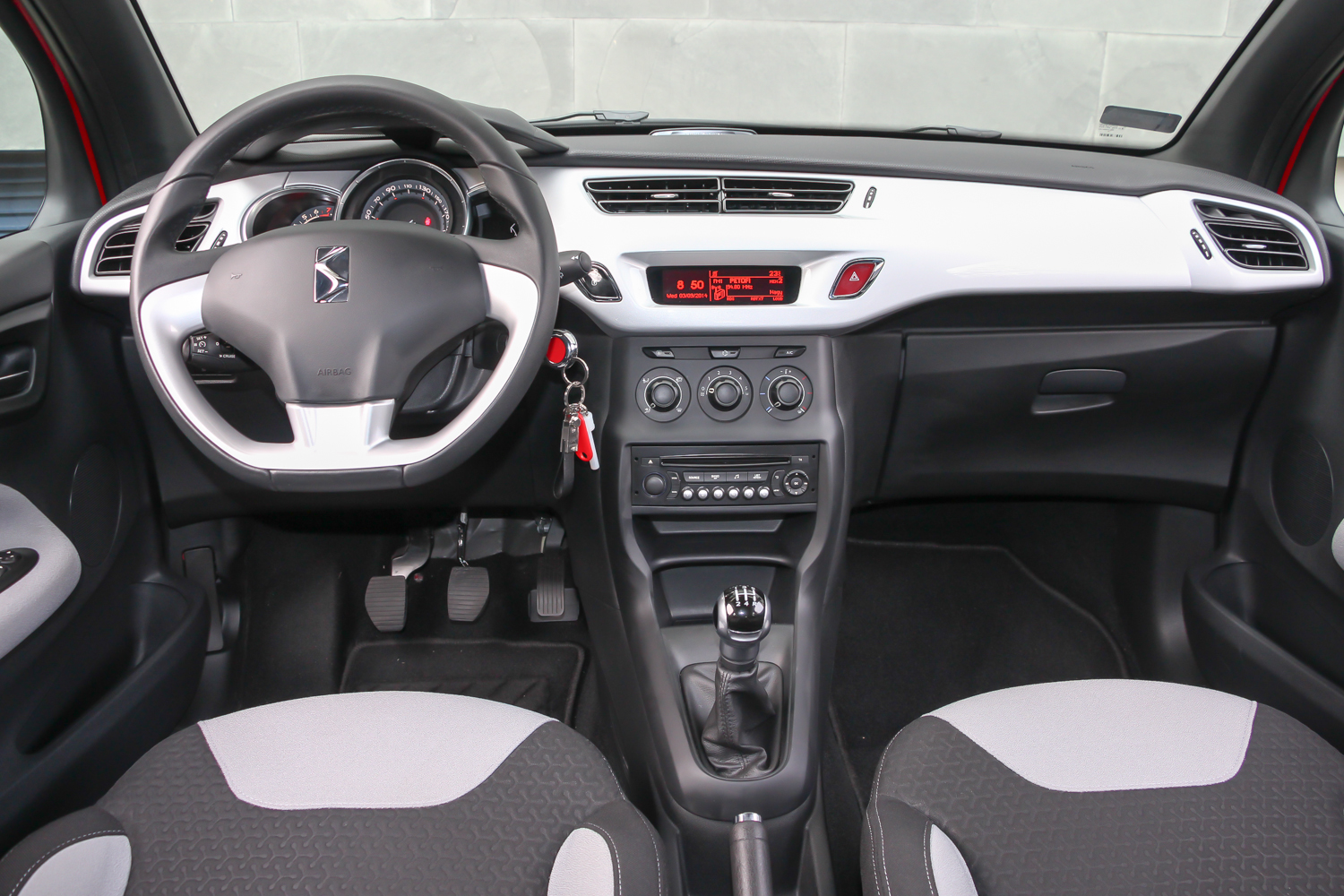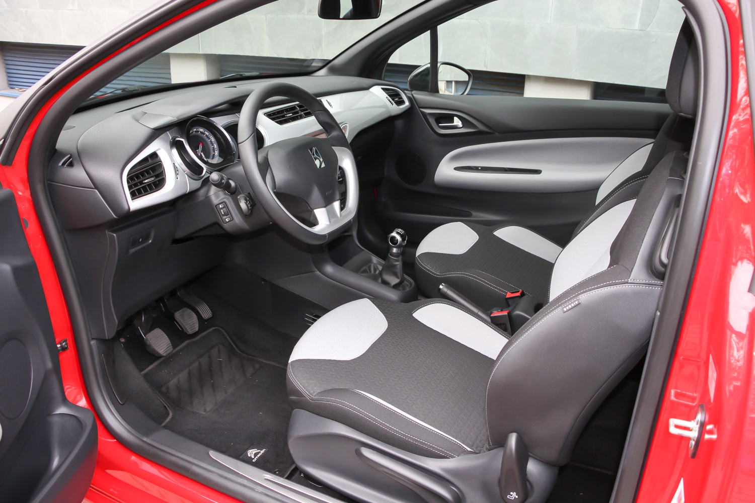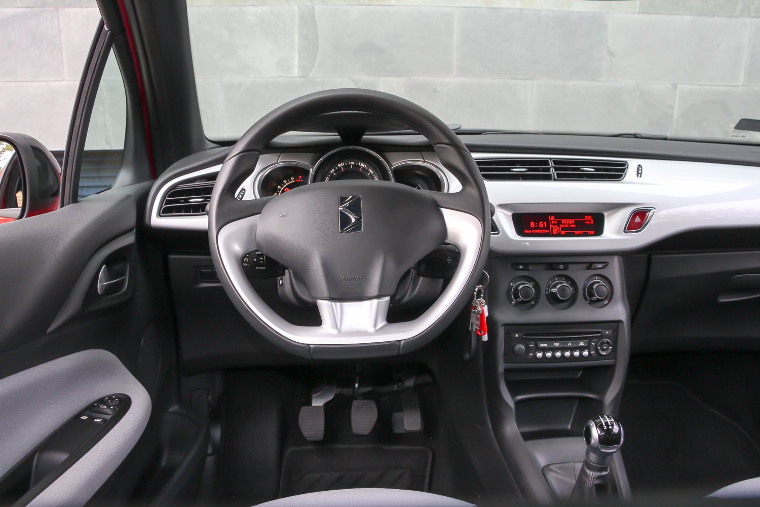 Miről marad le aki beéri három hengerrel? A DS3-nak ugyanolyan az ablaktörlője, mint a Dacia Dusternek, csak ez ott nem érdemel figyelmet, hiszen az egy kifejezetten olcsó autó. Vagy a jobboldali lapát túl hosszú, vagy a vezető előtti nem eléggé, de mindig egy folton, a vezető előtt marad a víz. Együtt lehet vele élni, de szerintem ez bosszantó. A beltér legjobb pontja számomra az ülés ami nekem nagyon kényelmes, dacára annak, hogy nincs állítható gerinctámasz. A legszebb pont a műszerfal, ami ugyanaz, mint amit a drágább változatok is megkapnak. Nem úgy a középkonzol, azt rendesen lebutították. A kézifék krómozott gombjával többnek akar látszani az autó, mint ami, de a hangja behúzáskor nagyon is olcsó francia kisautós, nem egy Mini szintje. Viszont az angol (német) konkurenssel szemben jutott bele háromállású tükörállító kapcsoló, ahol a középállás a semleges pozíció. Persze ez sem döntő érv, de nekem vesszőparipám. A régi 1.4-es 95 lóerős körülbelül 10-zel gyorsabban ment nála, de a végsebesség keveseknek számít. Nem úgy az ár és a fogyasztás. 6 légzsák, ESP, tempomat, klíma, ködlámpa, elektromos ablakok járnak a legolcsóbb DS3-hoz, ami így alapváltozatban is megkapó jelenség. 975 kilós tömegéhez a legális határokon belül bőven elég a 82 lóerő, nyilván nem lesz így autópályás cirkáló, de nem is arra való. Városba, országútra teljesen jó és élhető ez a kombináció, ötfokozatú váltóval és hátsó dobfékkel – nem kell több. Országúton 4-5 literrel beéri, a gyári átlaga 4,6 liter, a teszthét alatt a fedélzeti számítógép szerint 6,6 litert fogyasztott fele országúttal és sok városi araszolással.